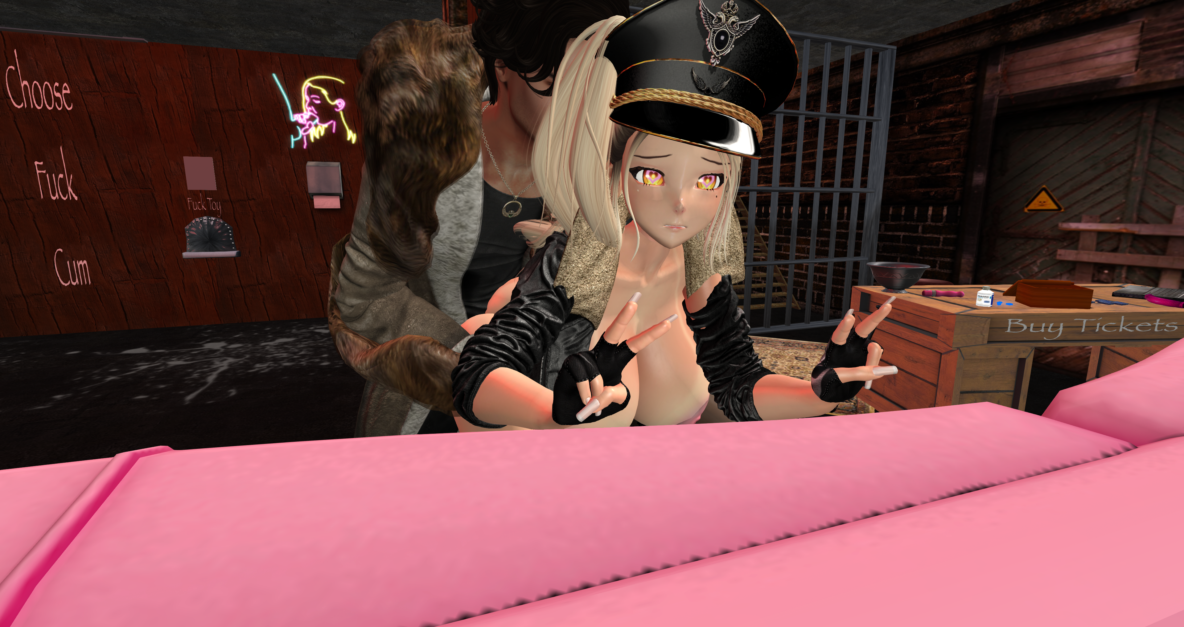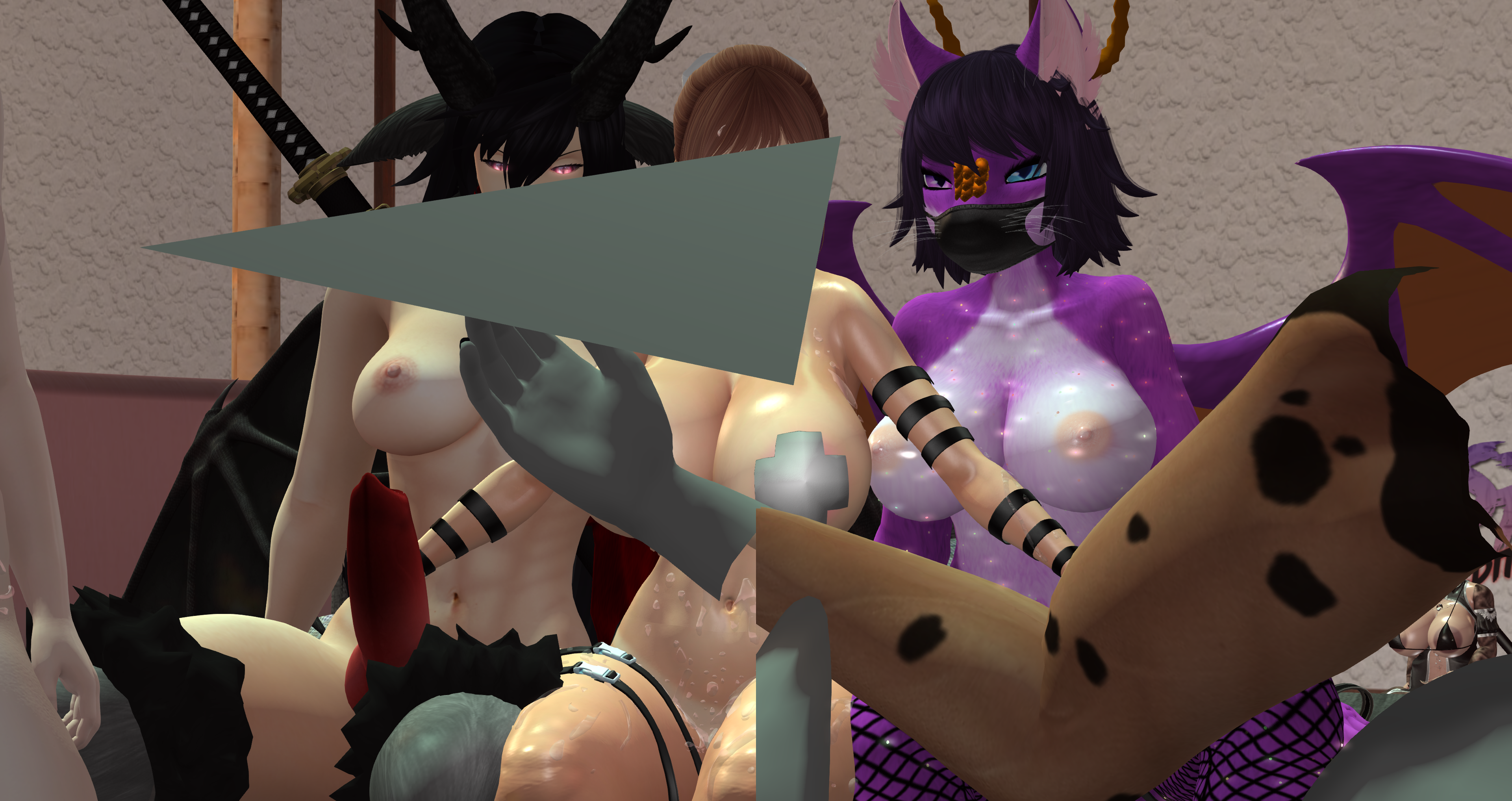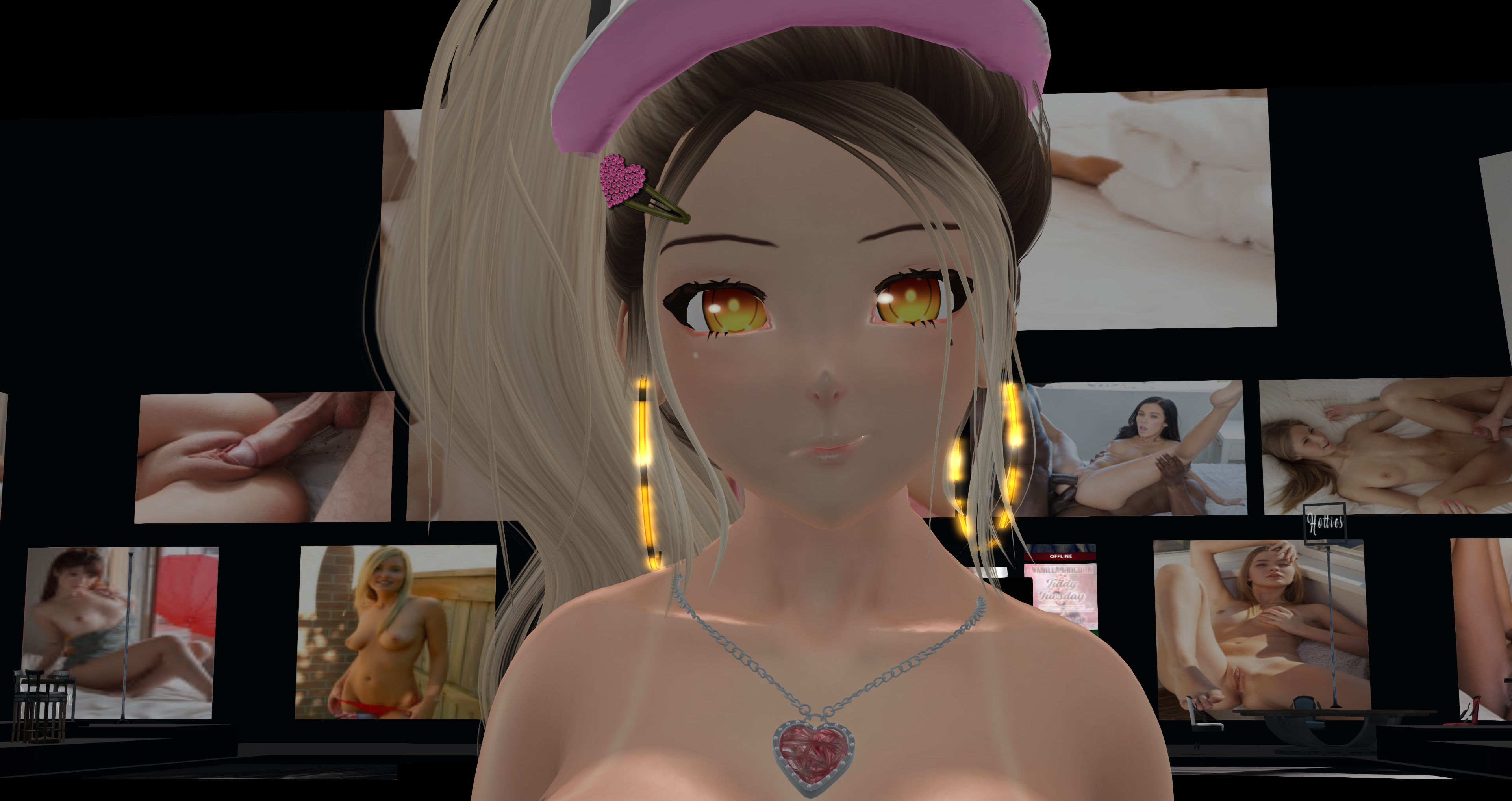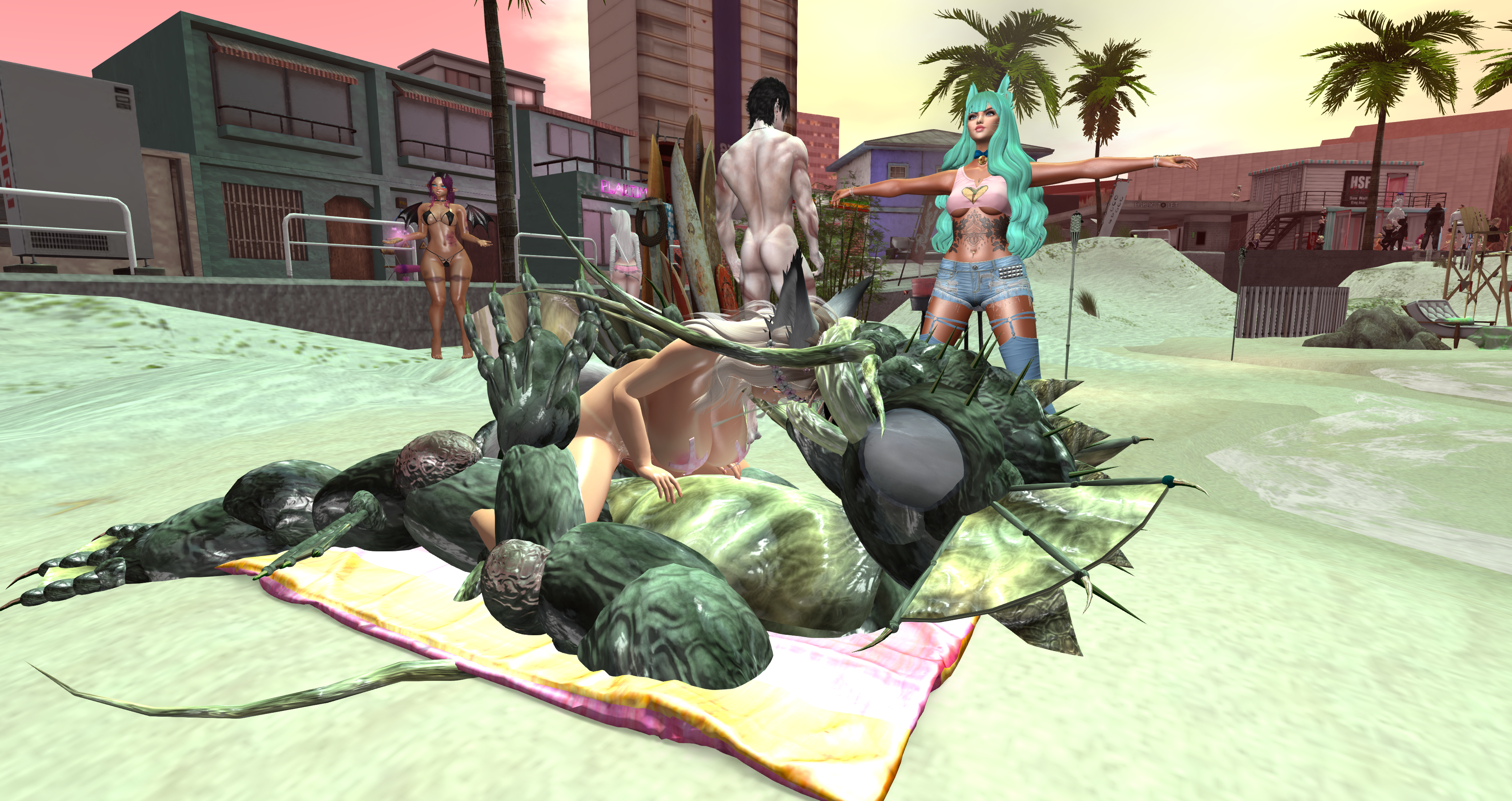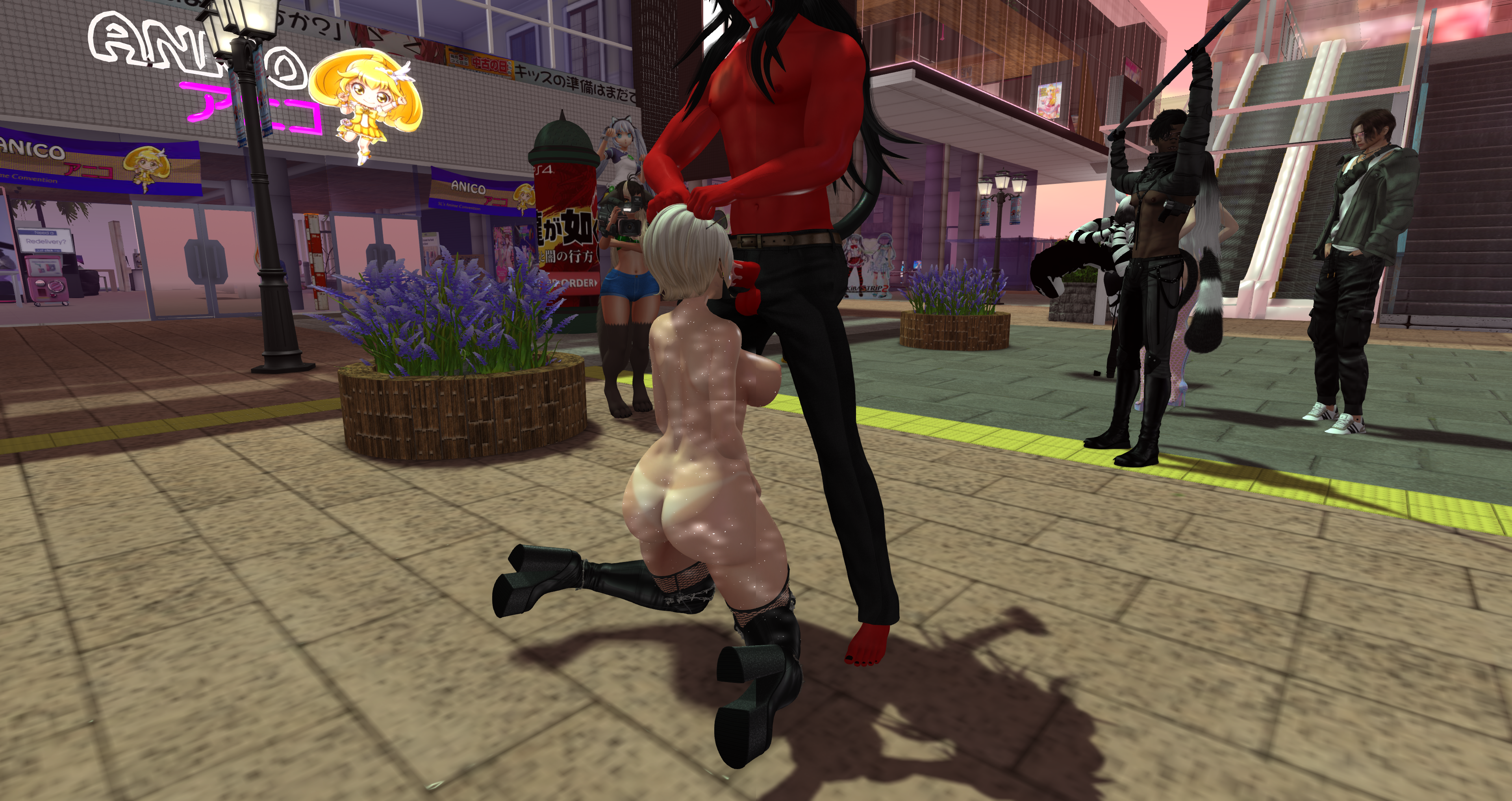 Second Life Hentai Slut surrounded by black cocks