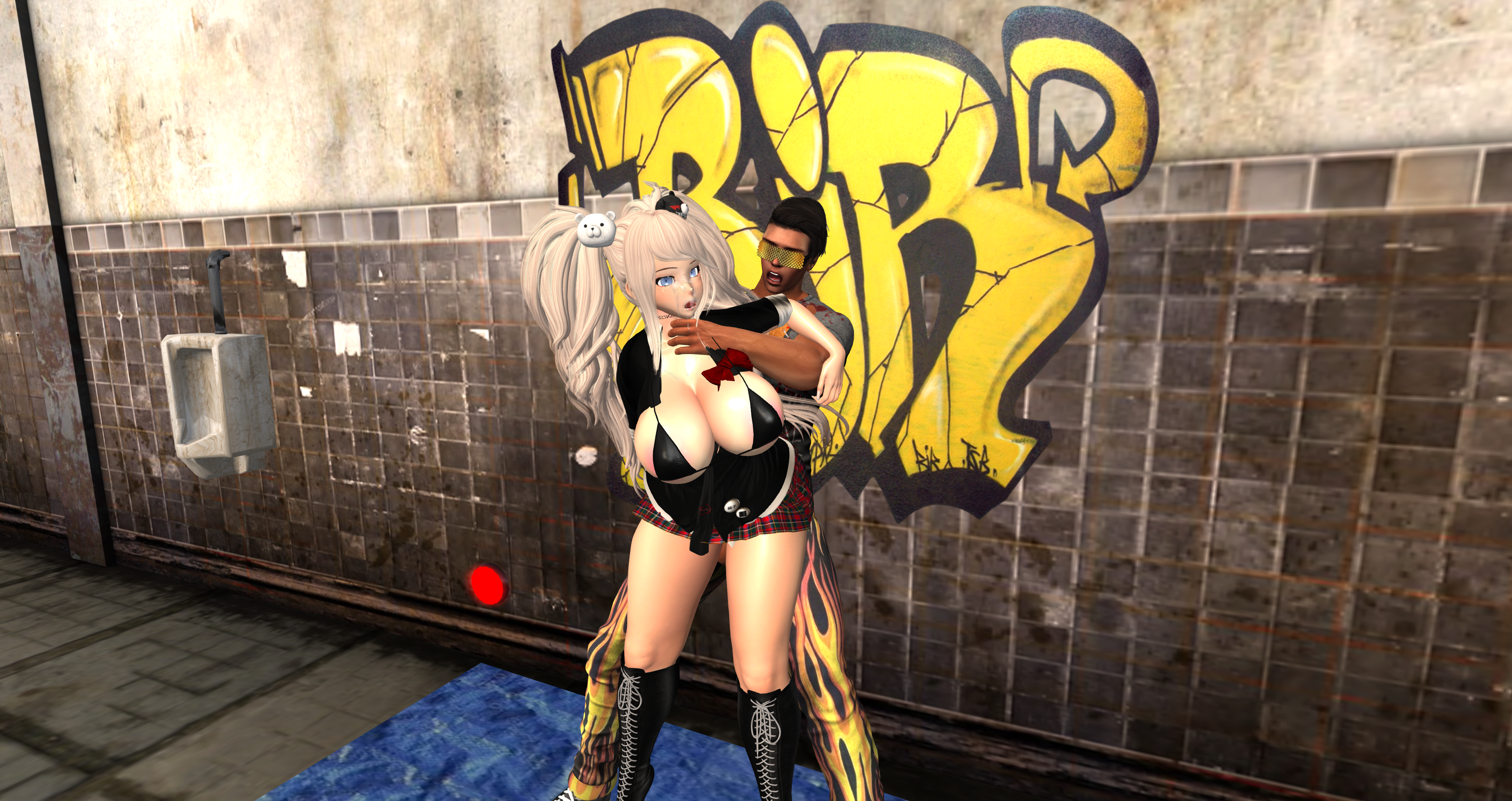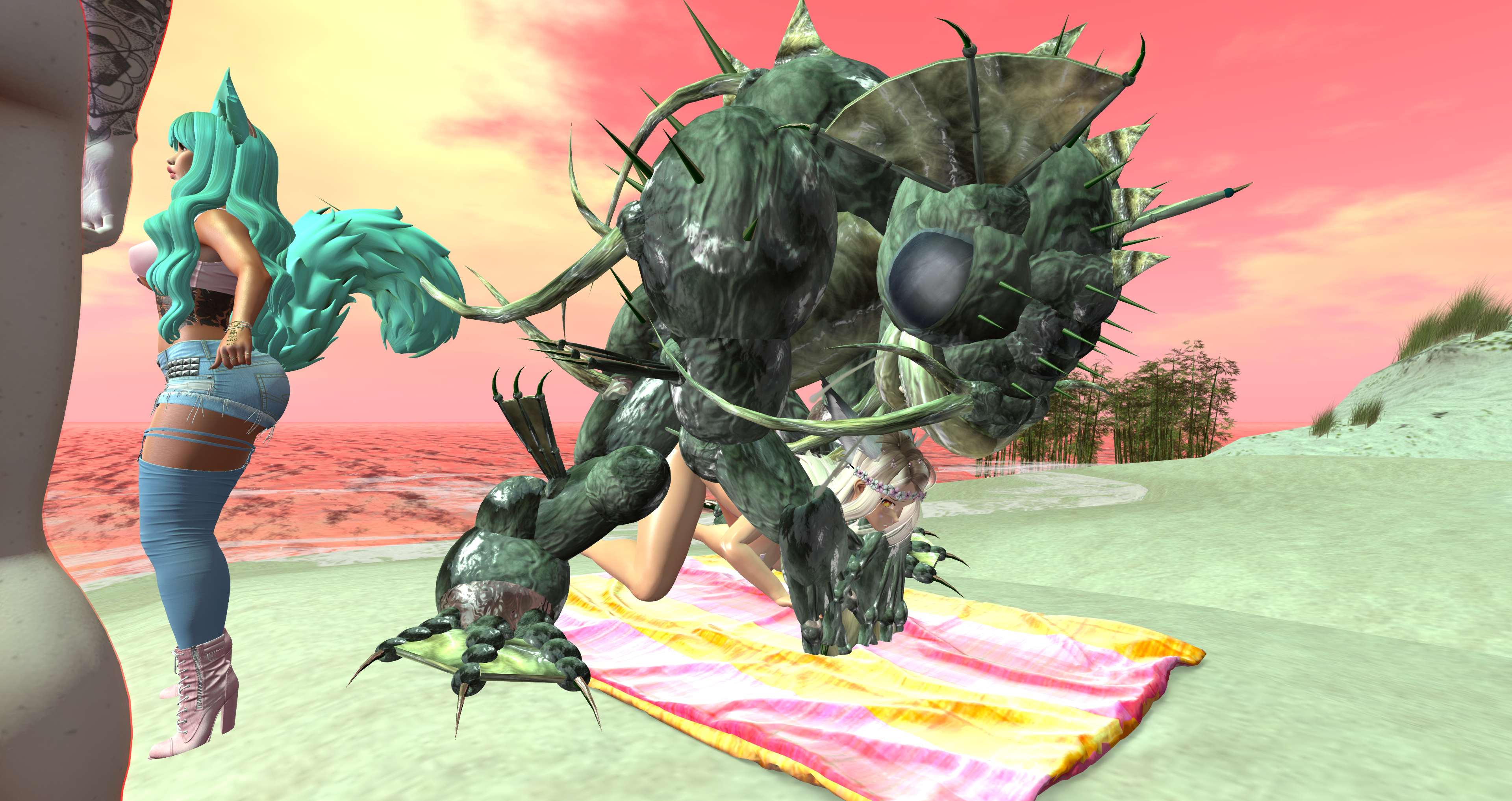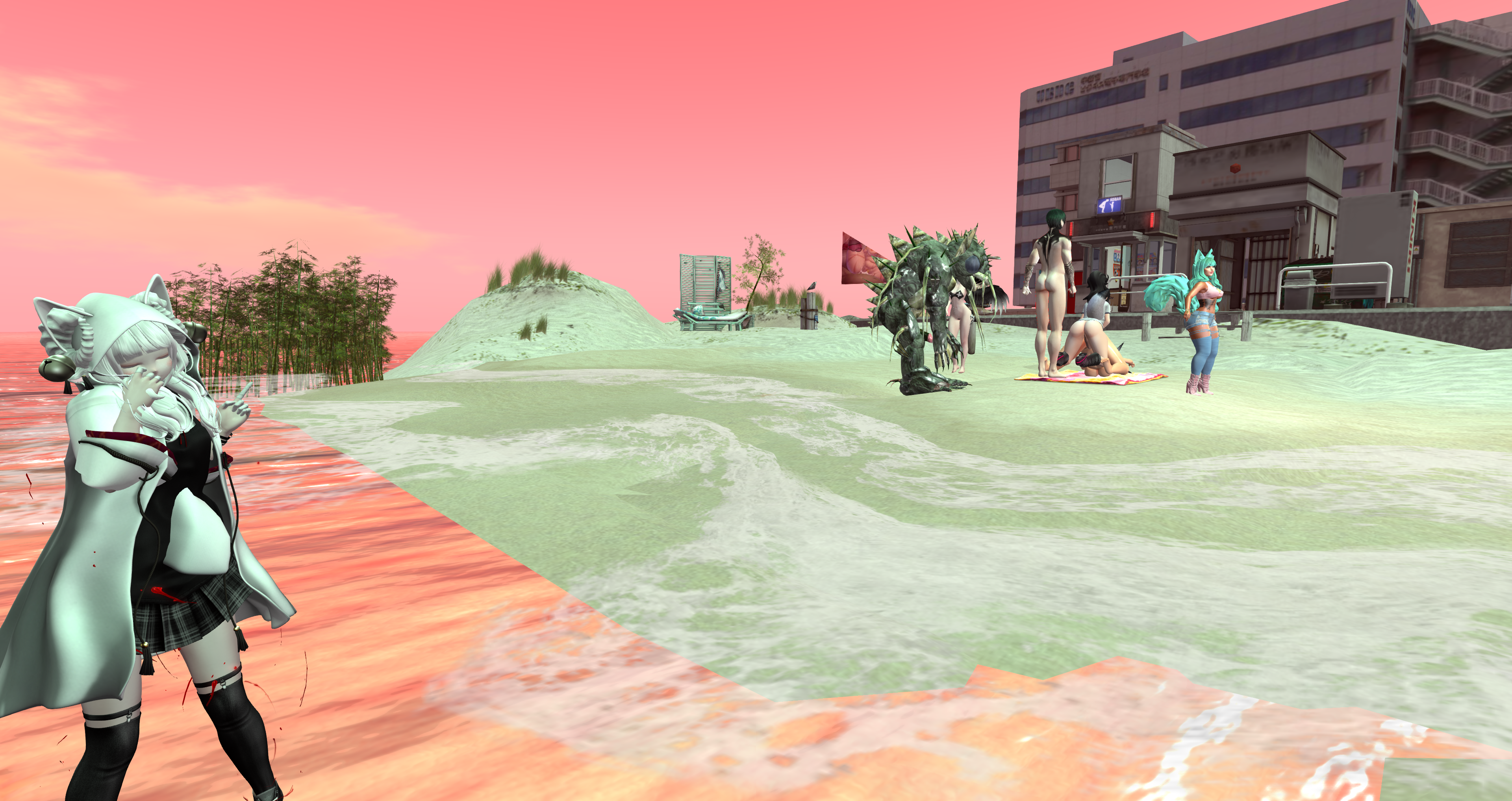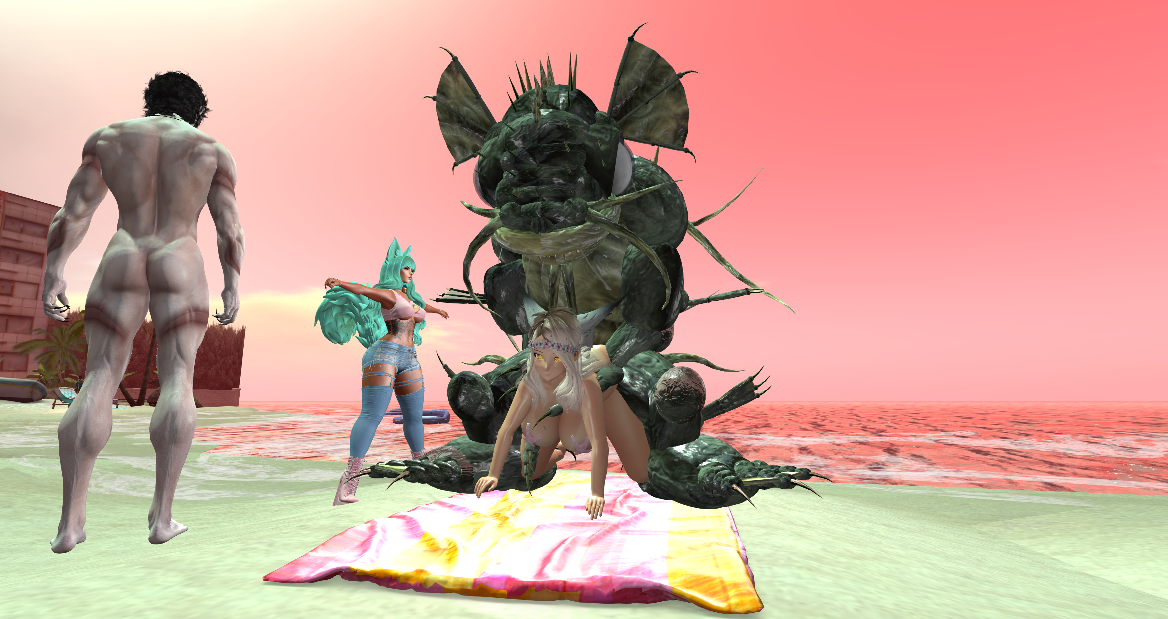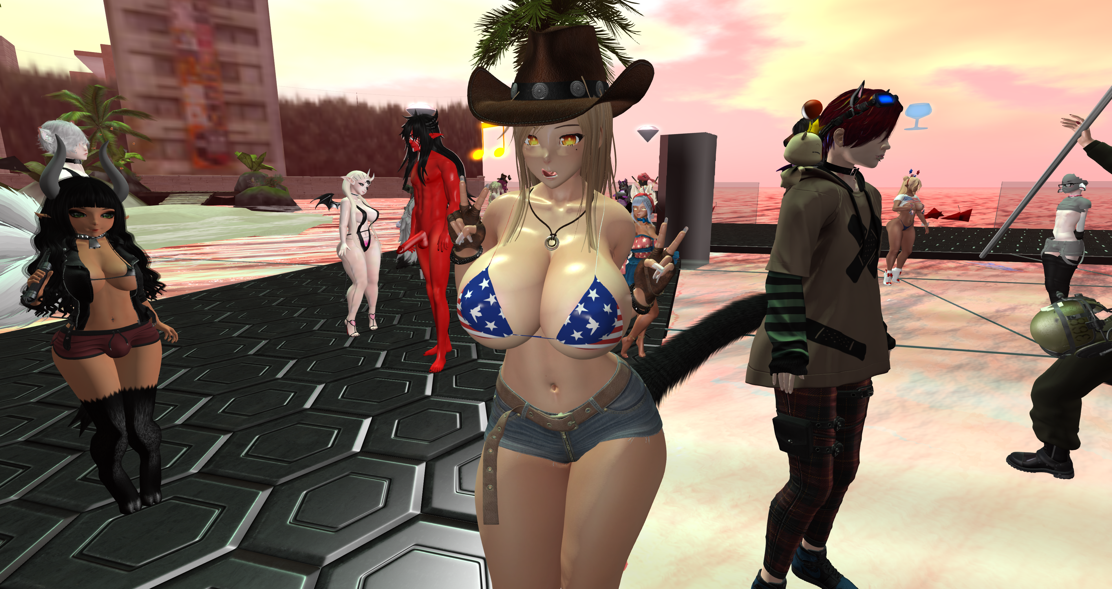 Second Life Hentai Slut surrounded by black cocks