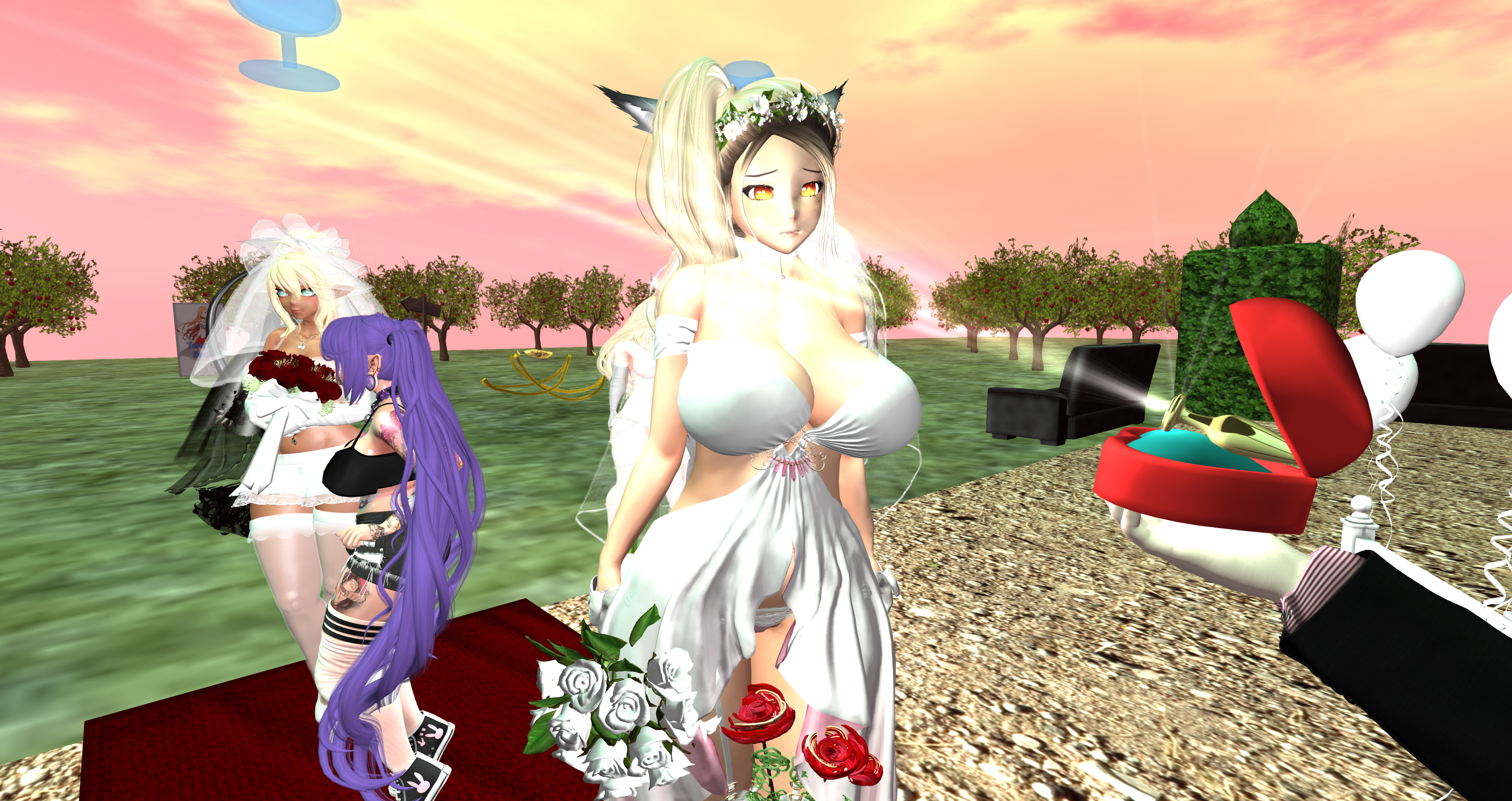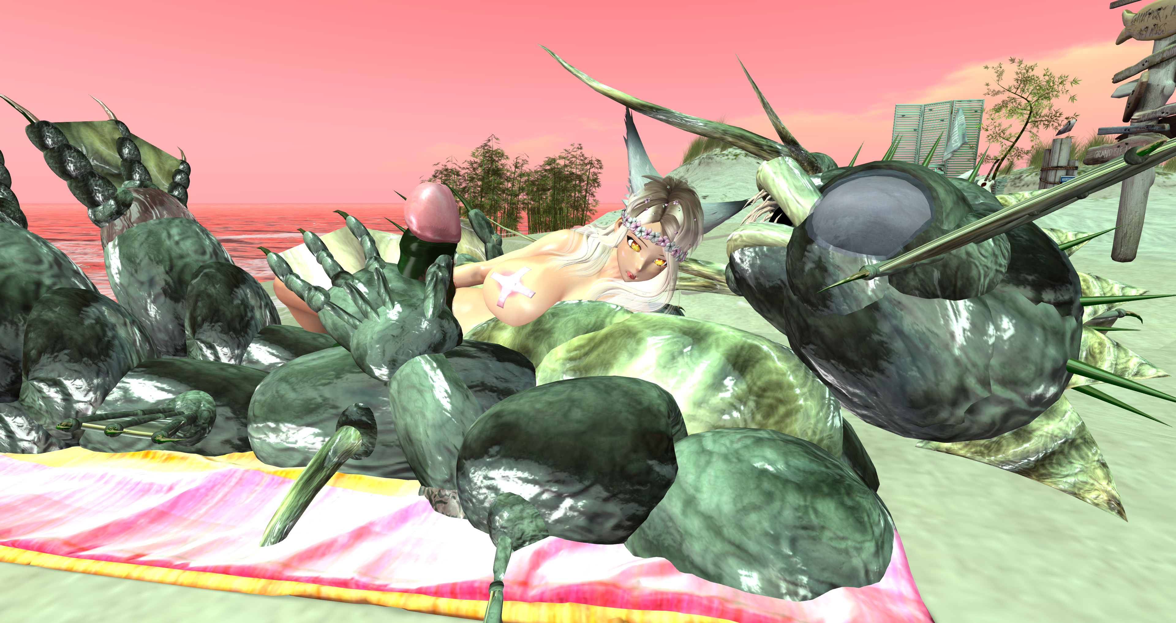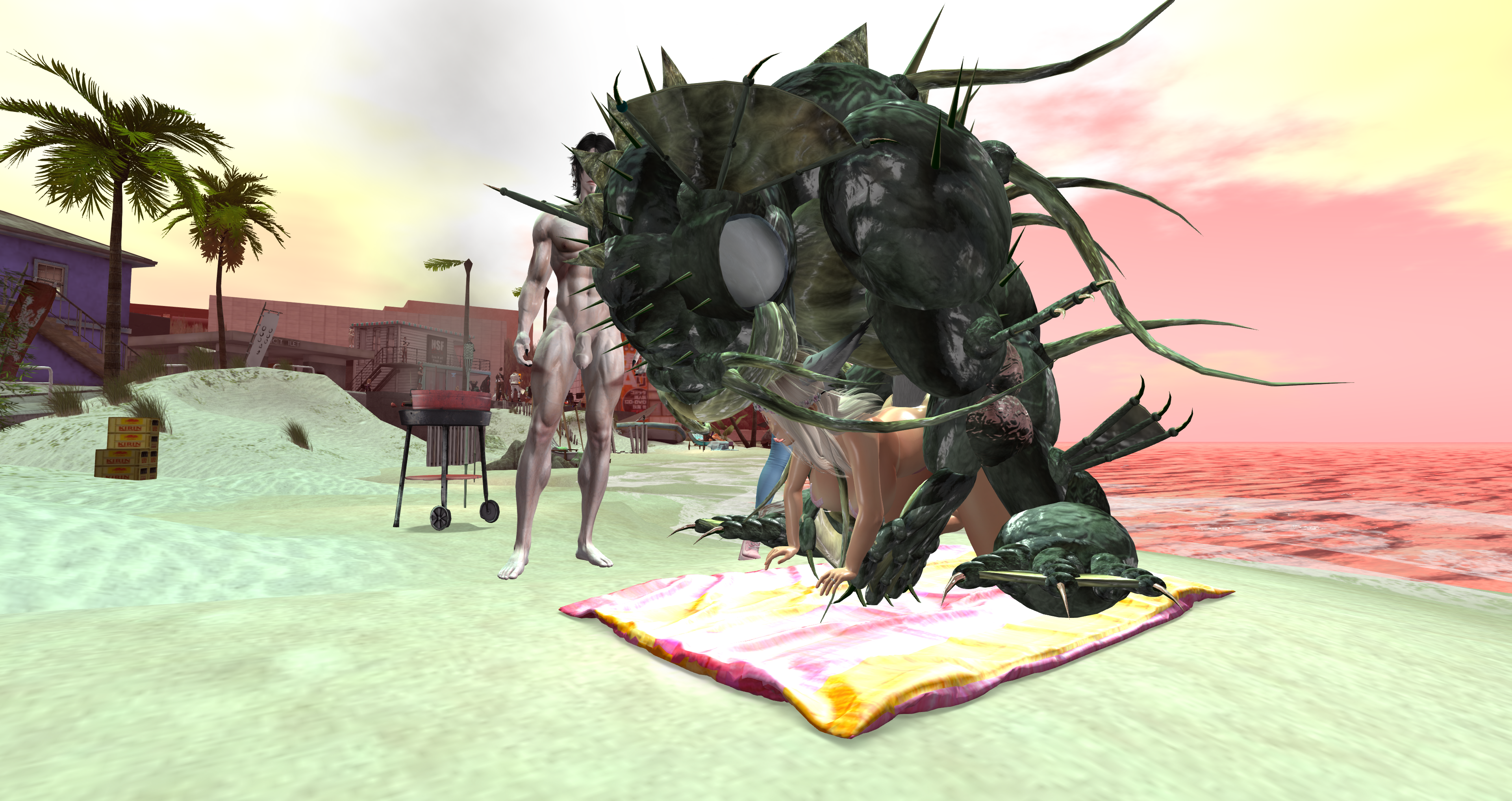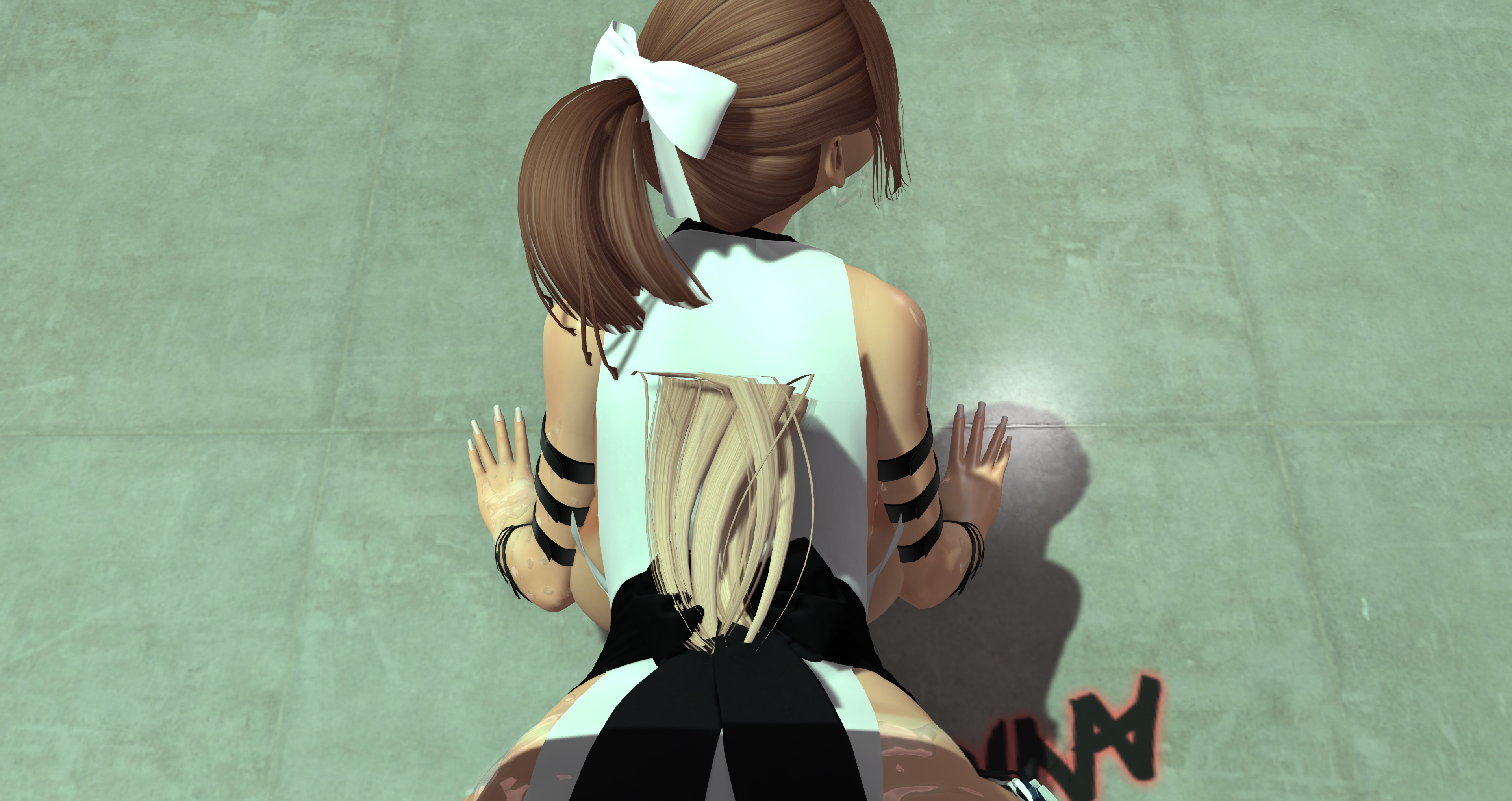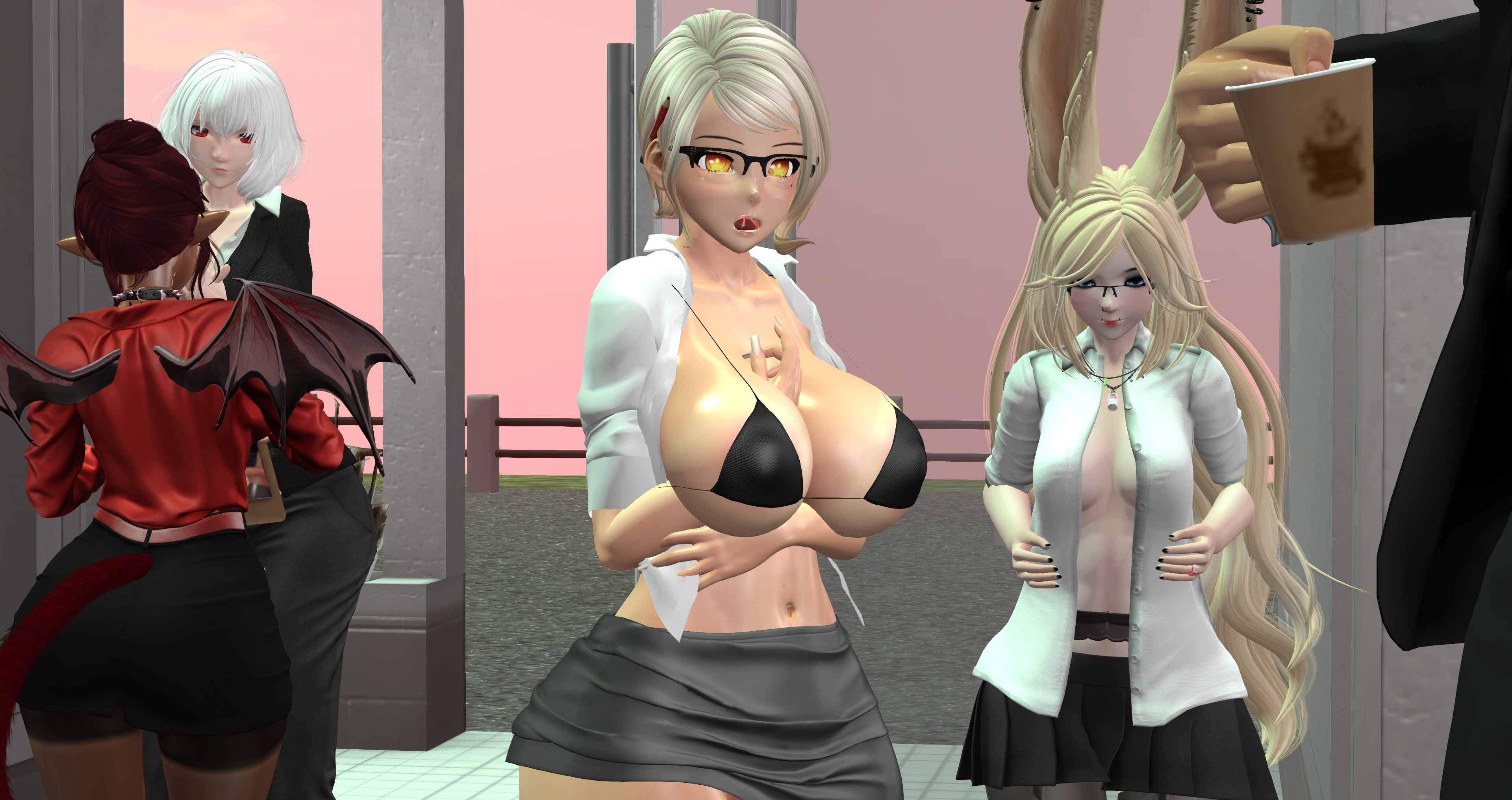 Second Life Hentai Slut surrounded by black cocks