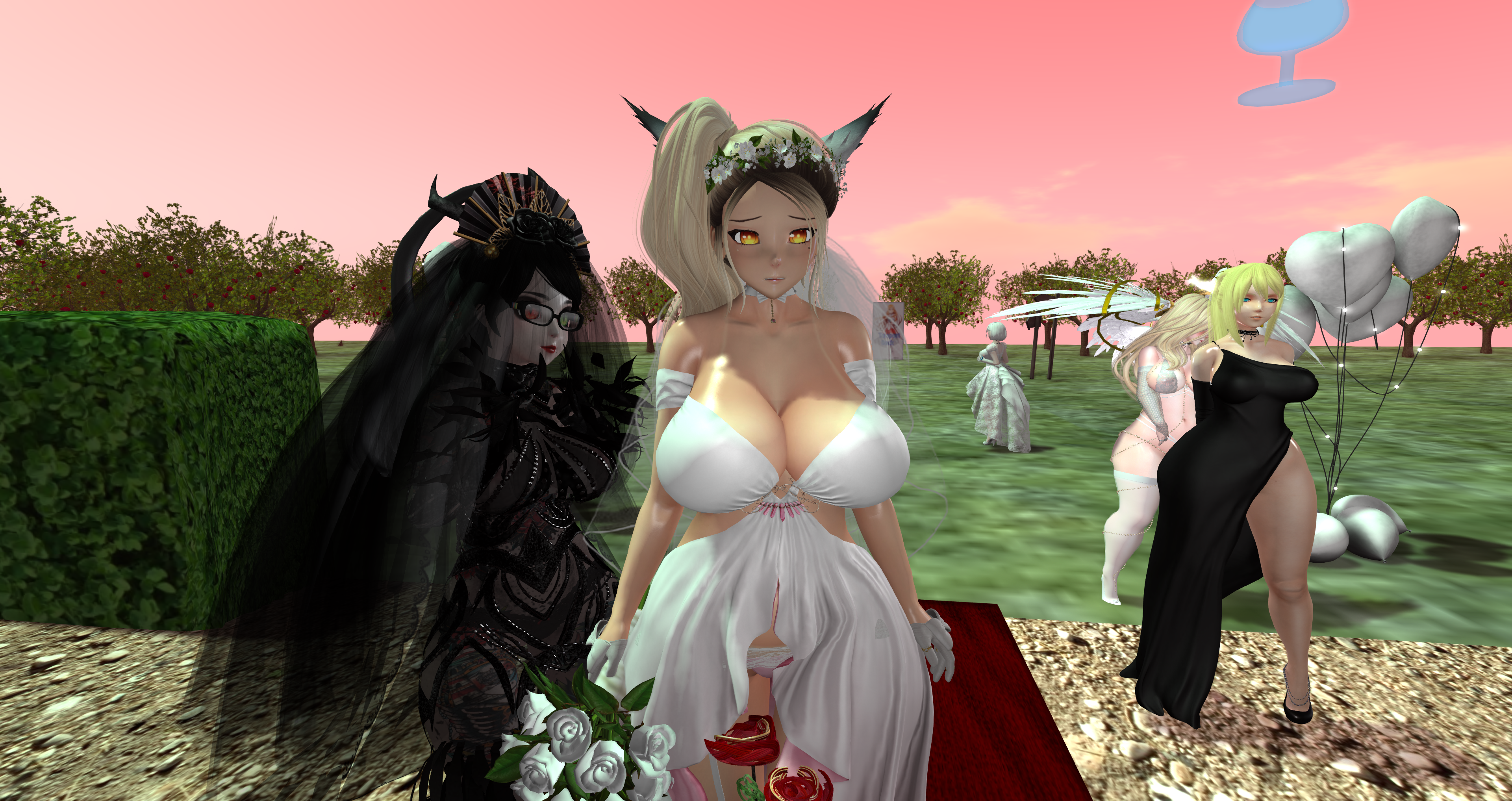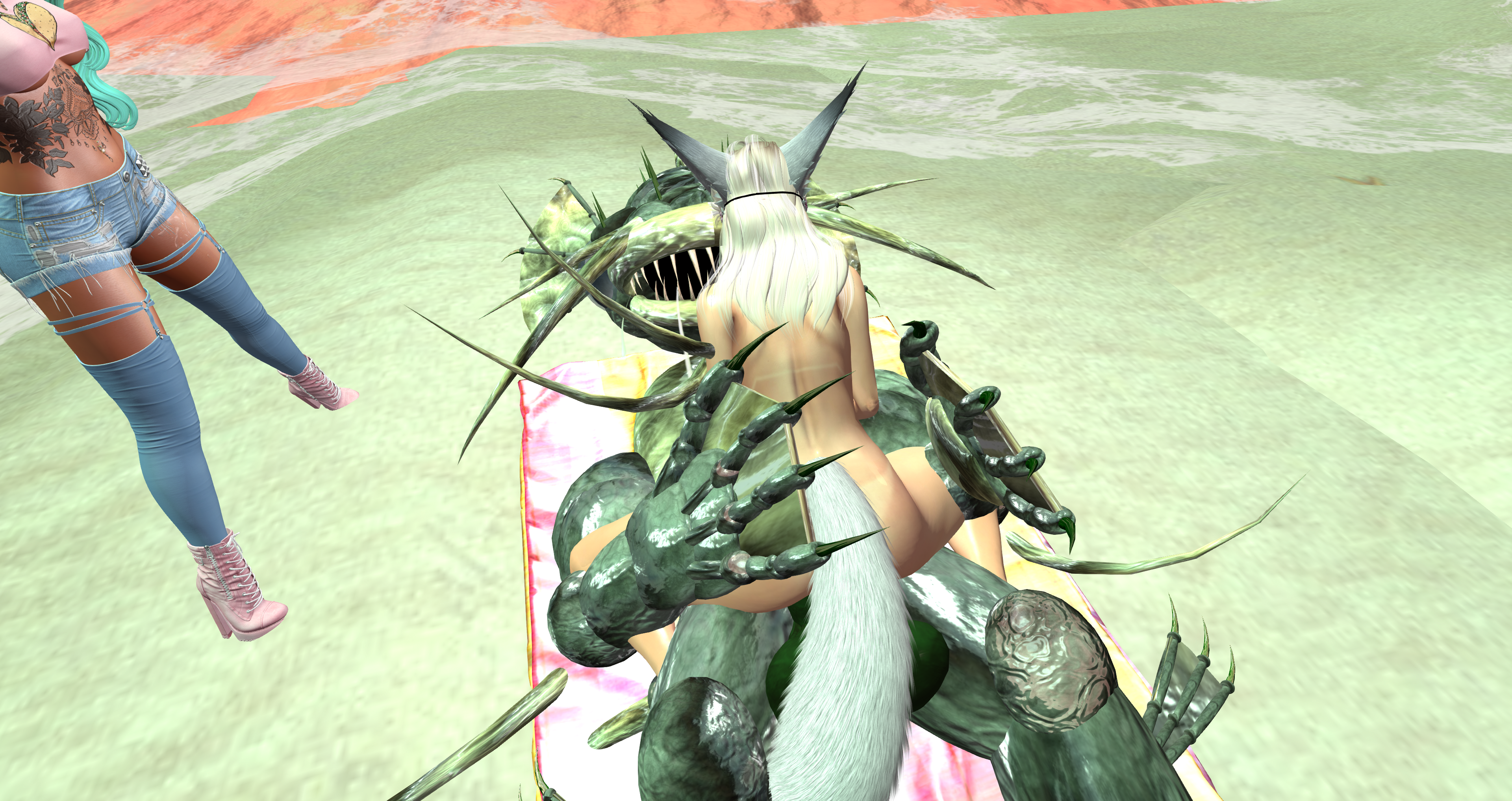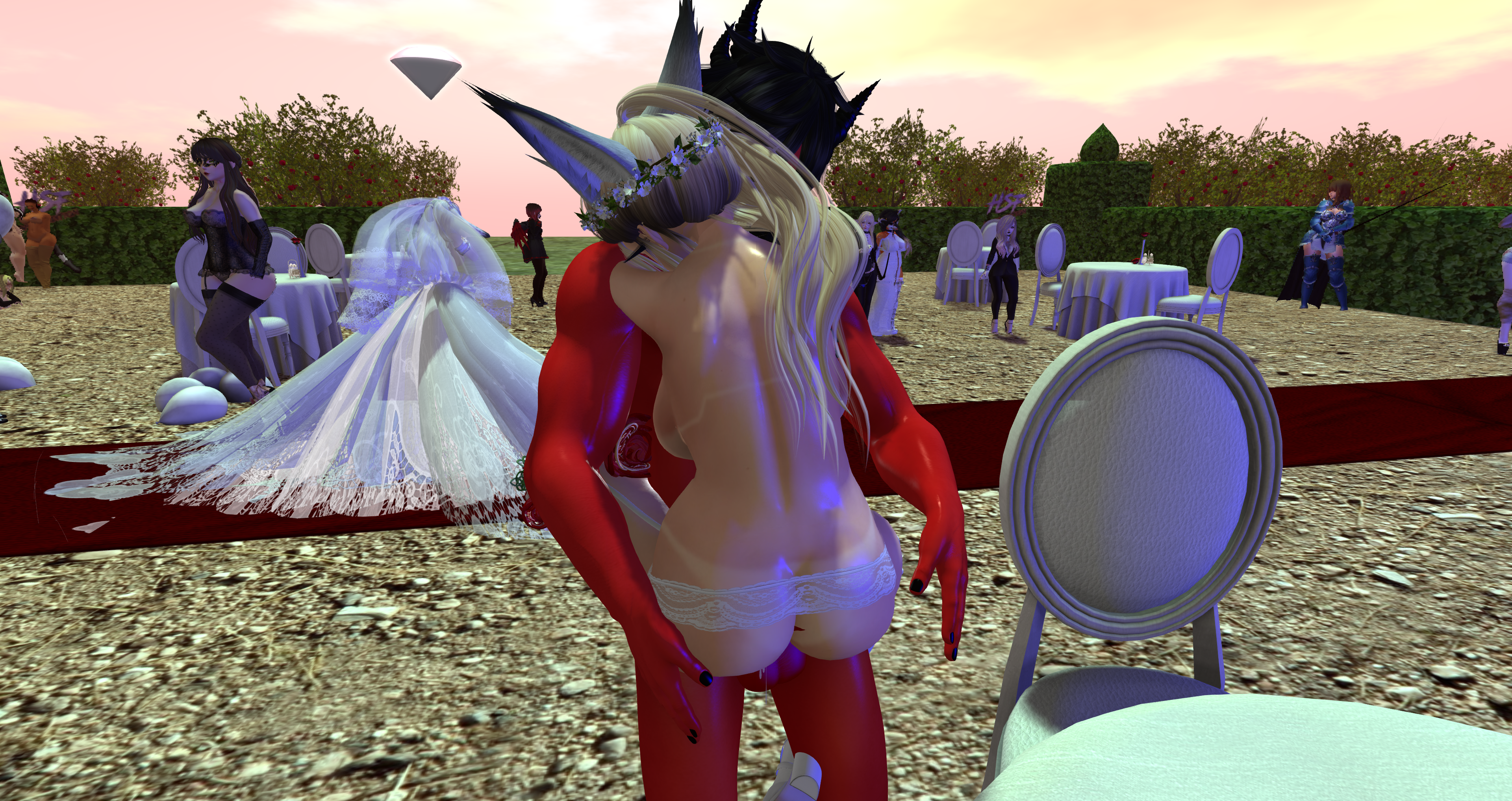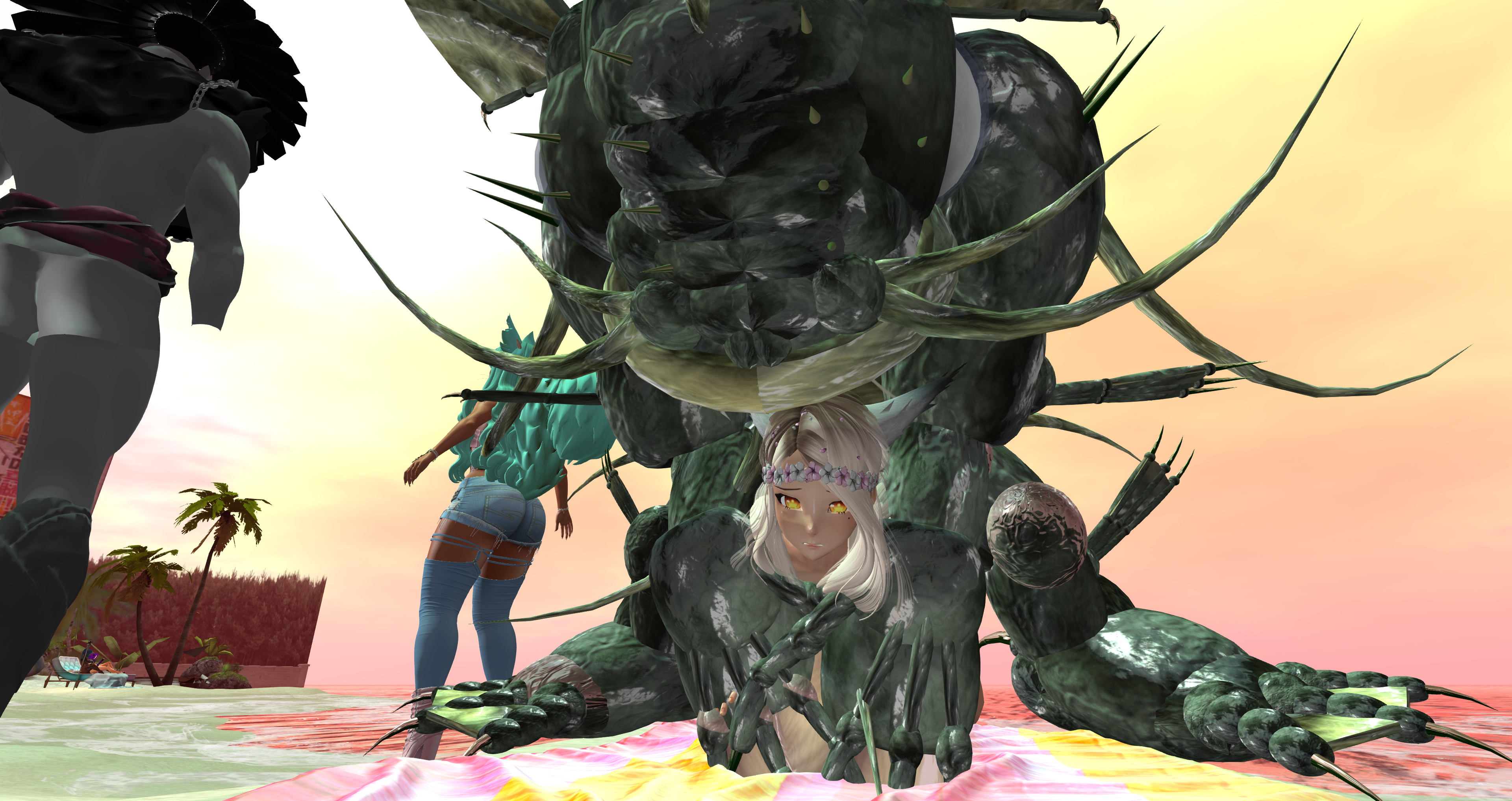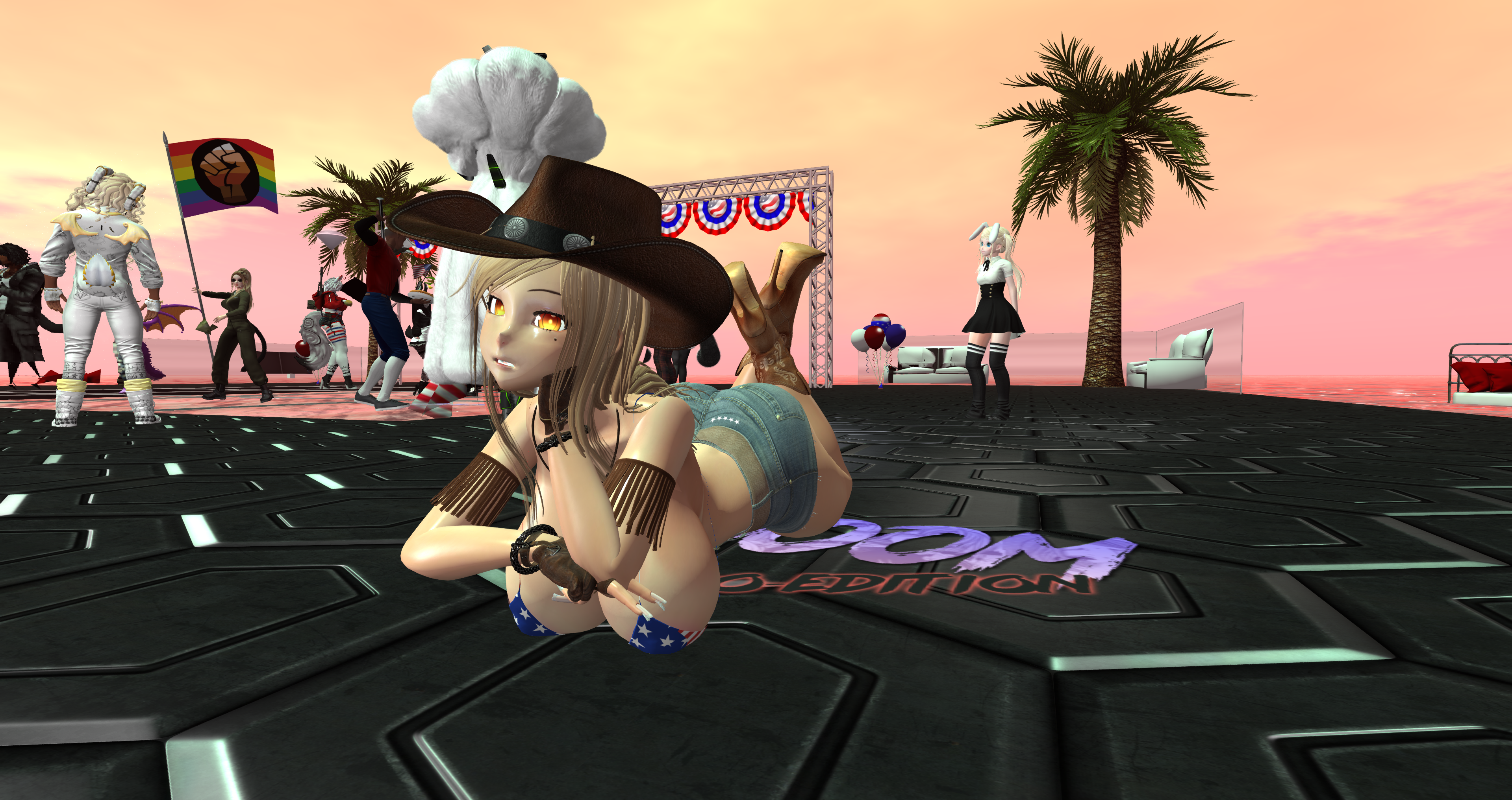 Second Life Hentai Slut surrounded by black cocks