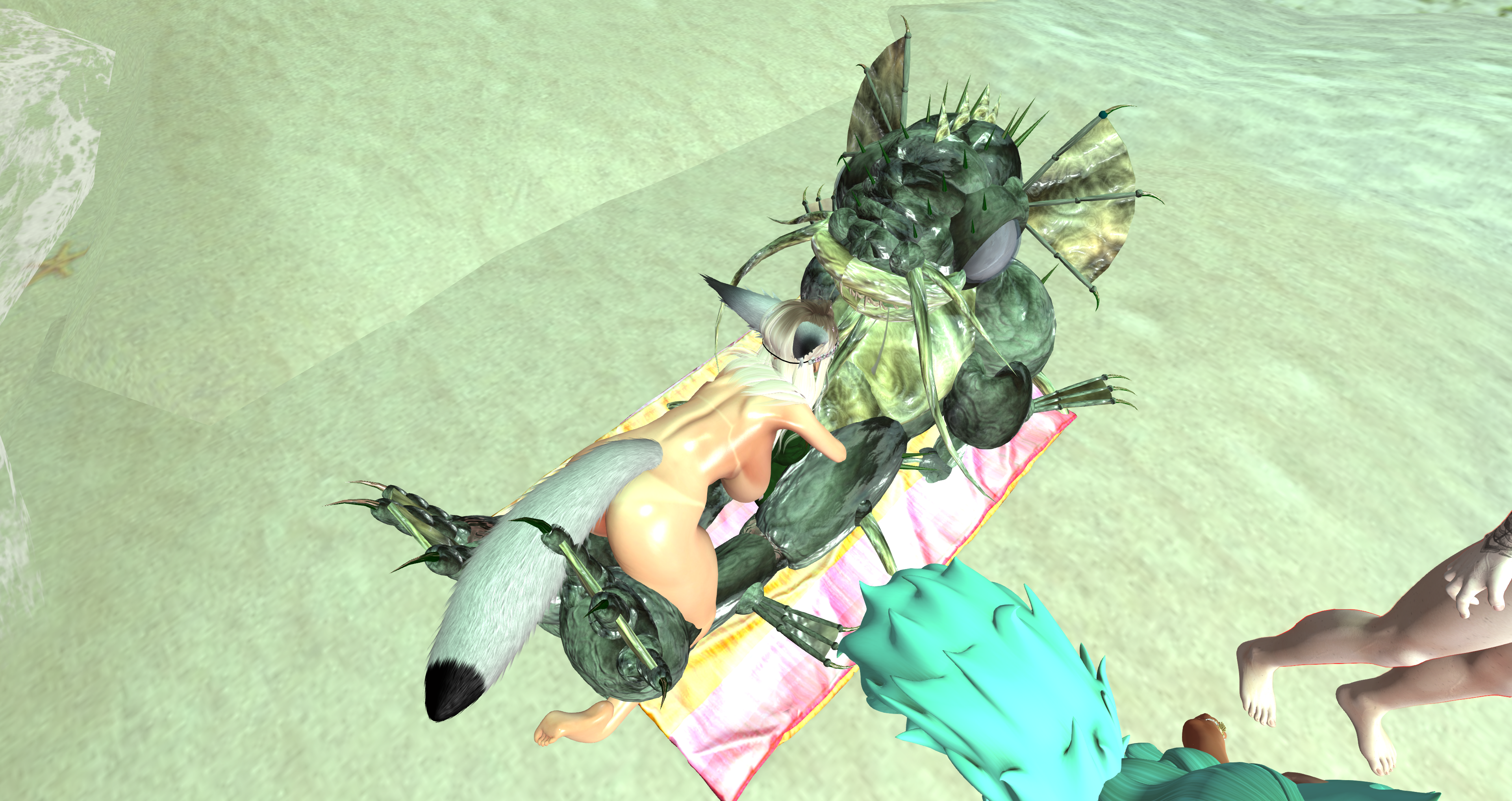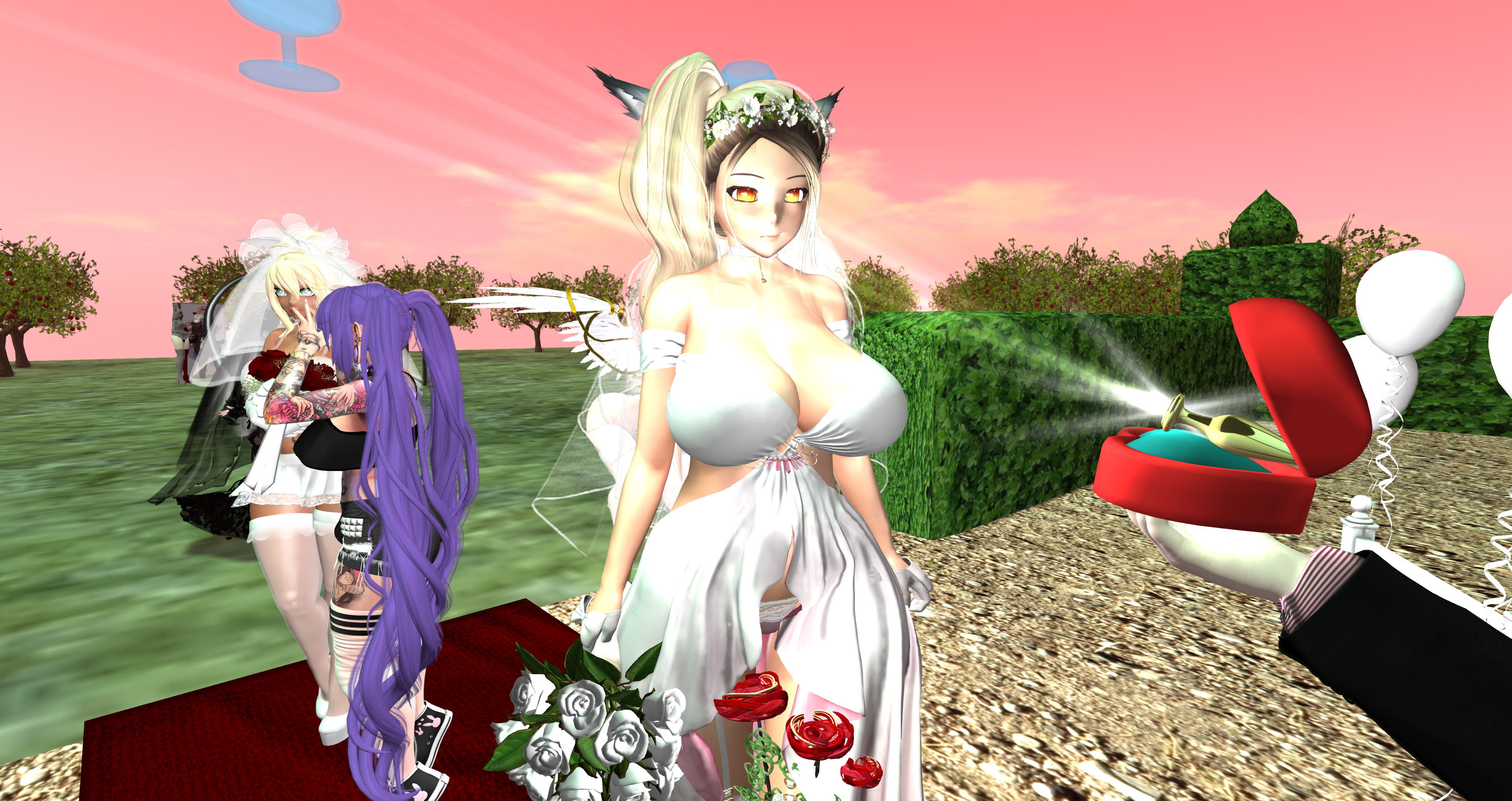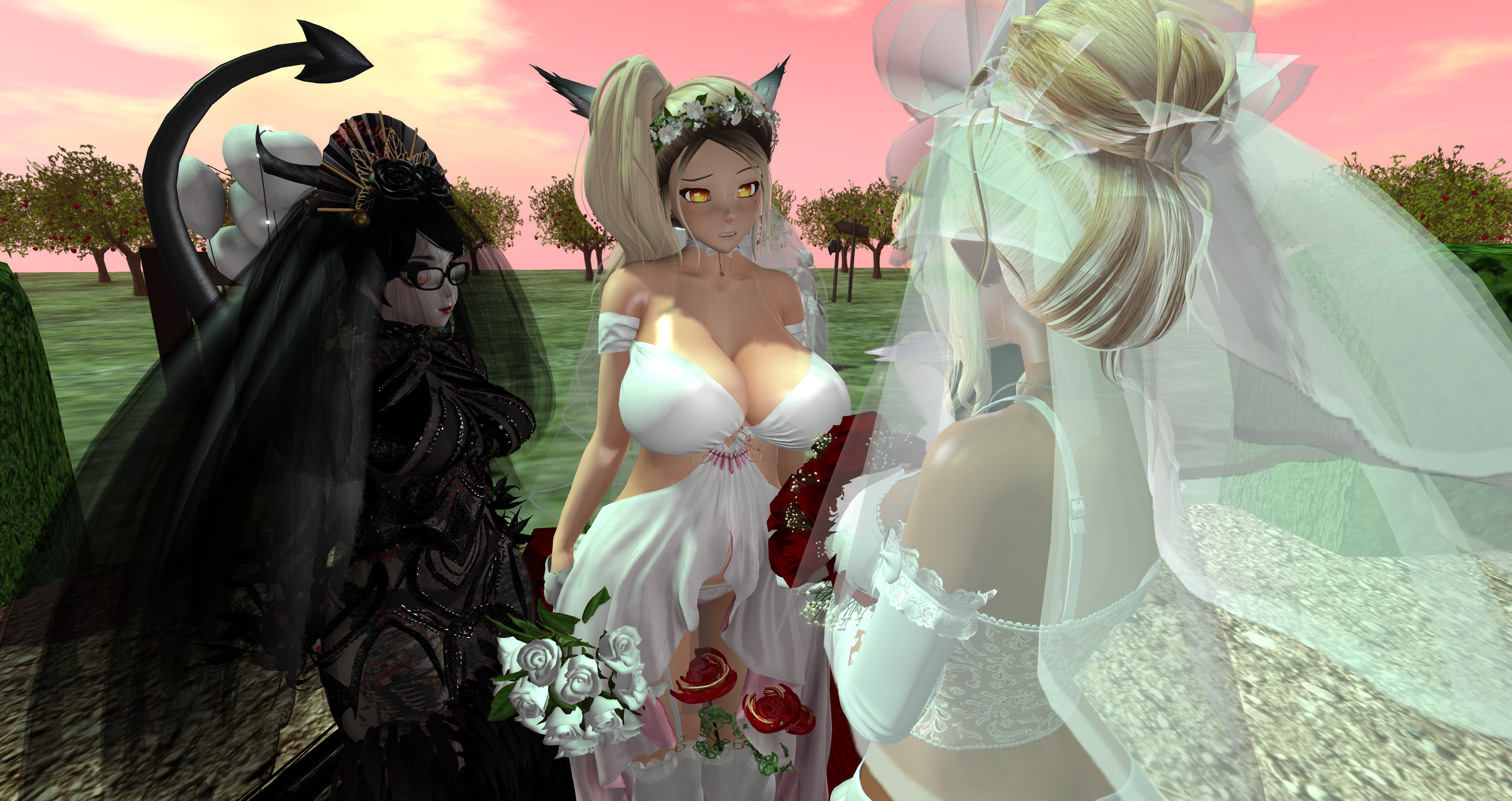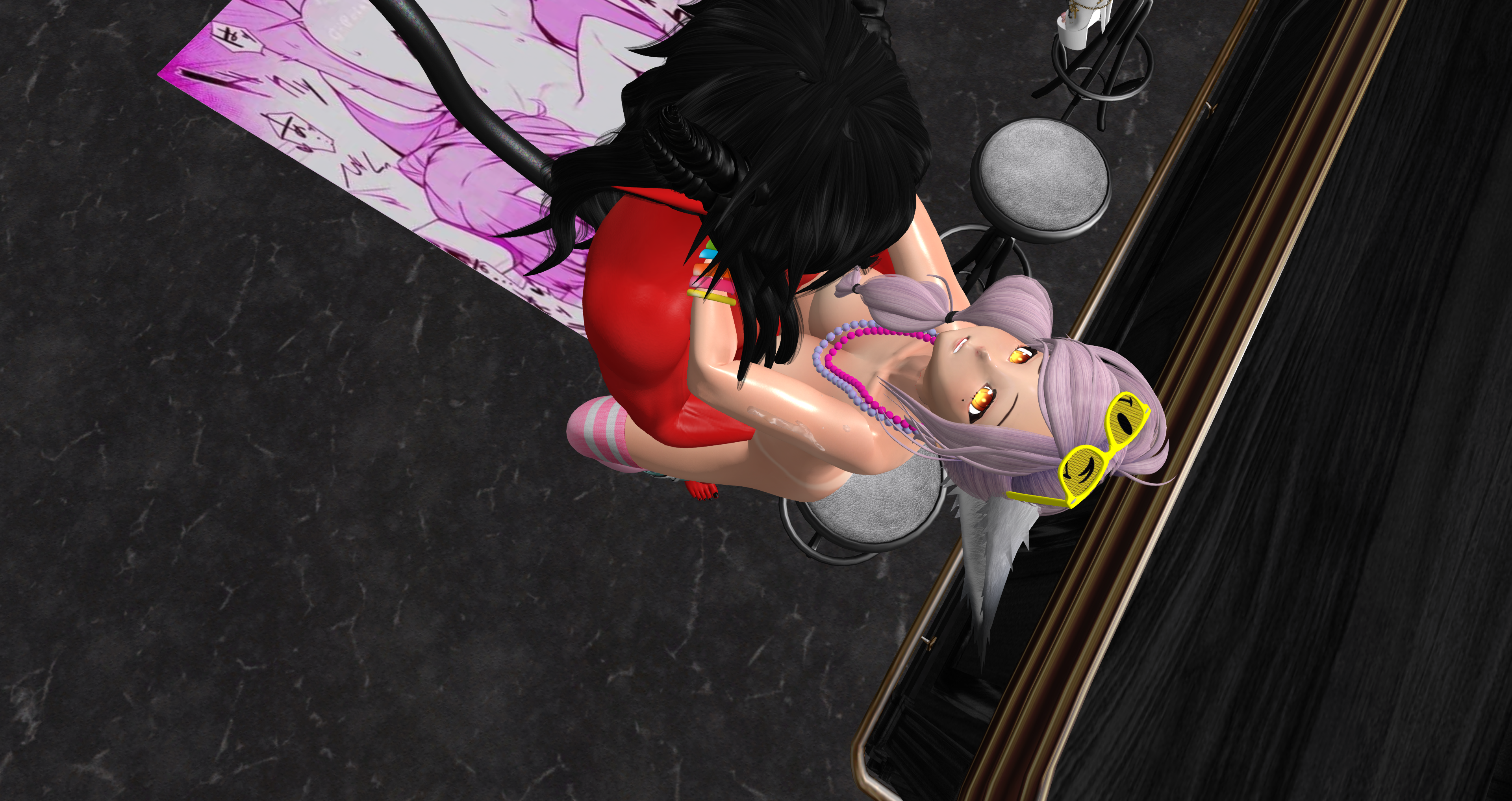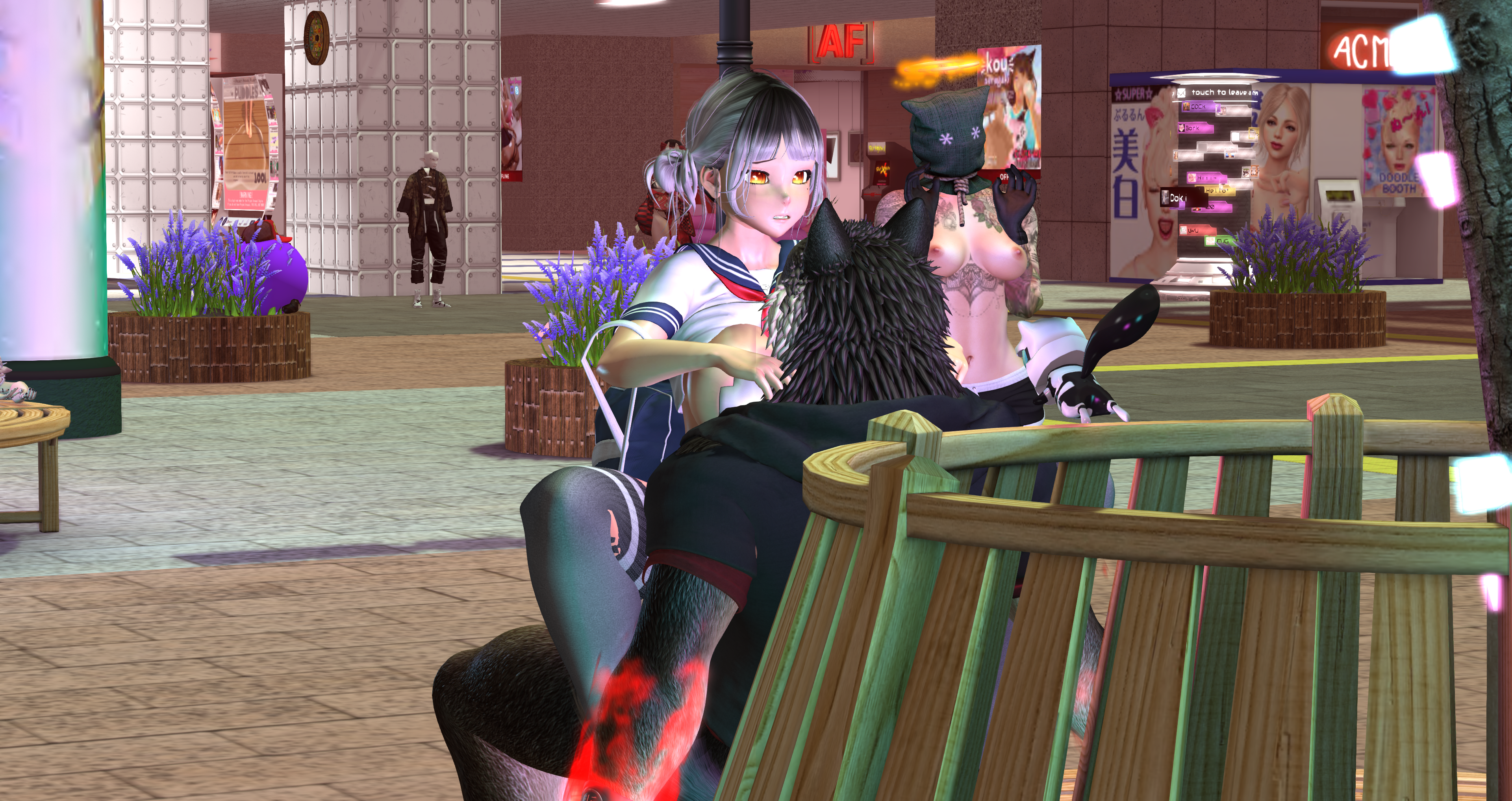 Second Life Hentai Slut surrounded by black cocks
