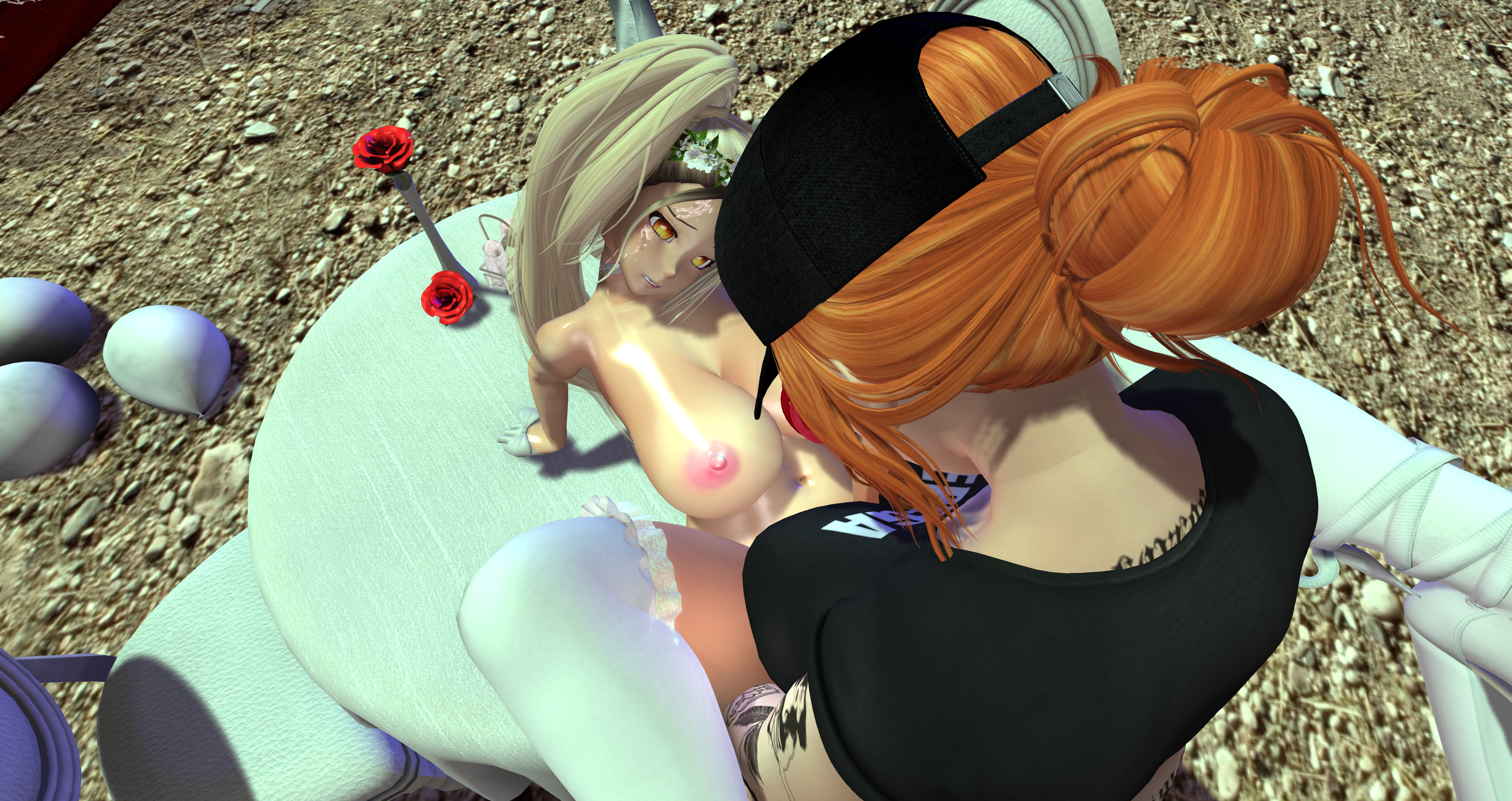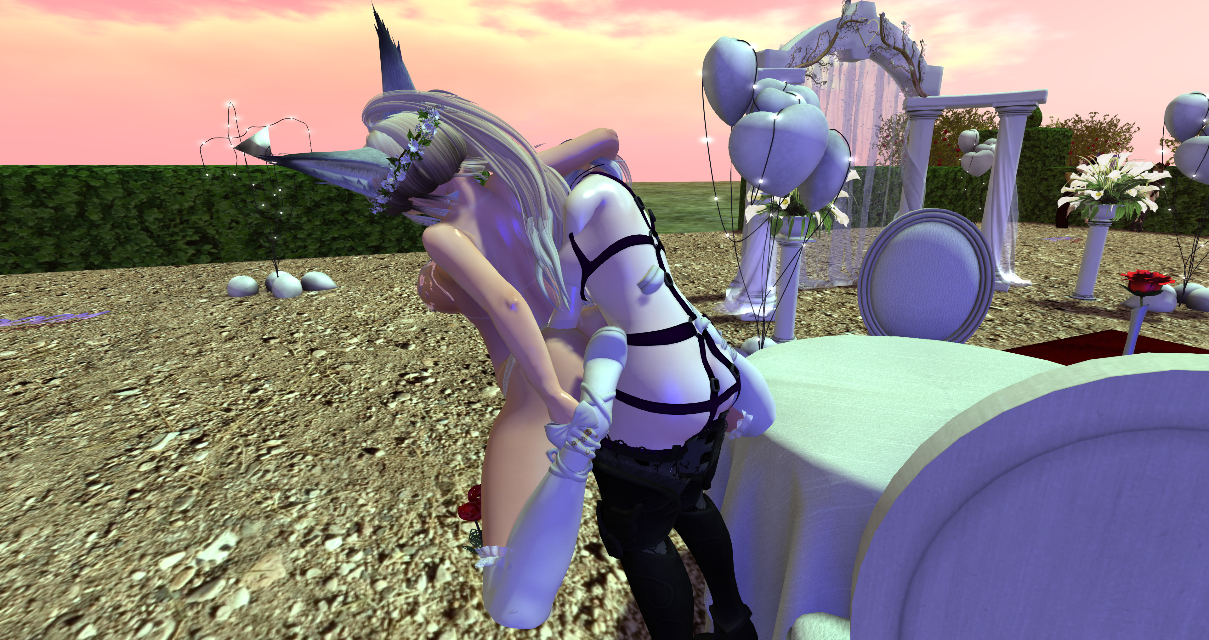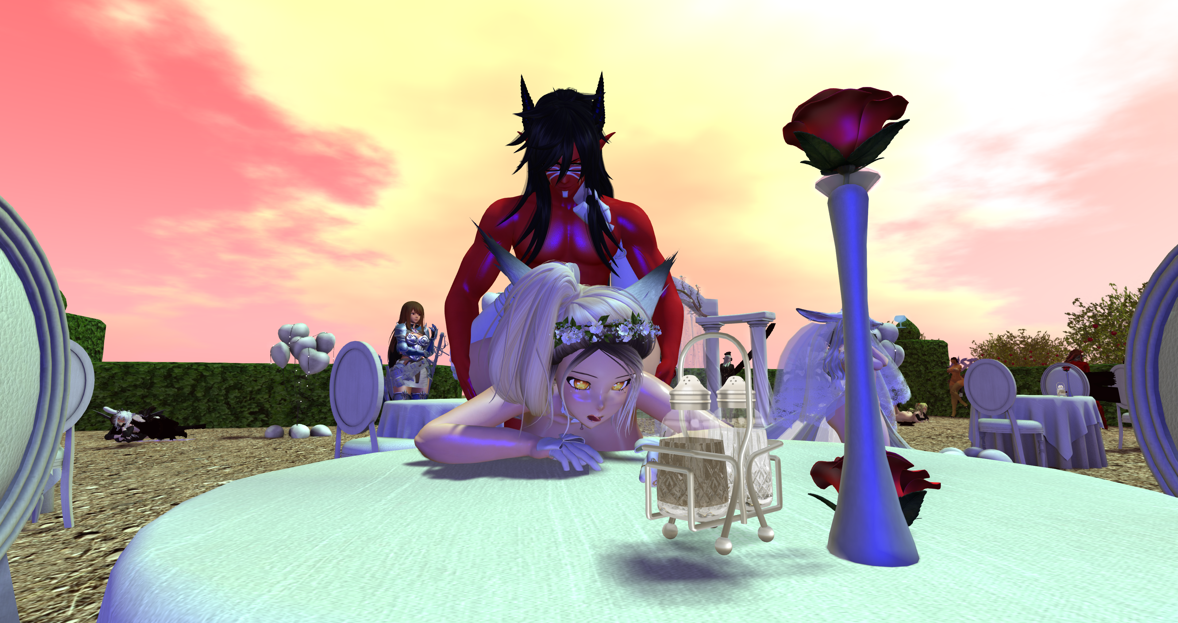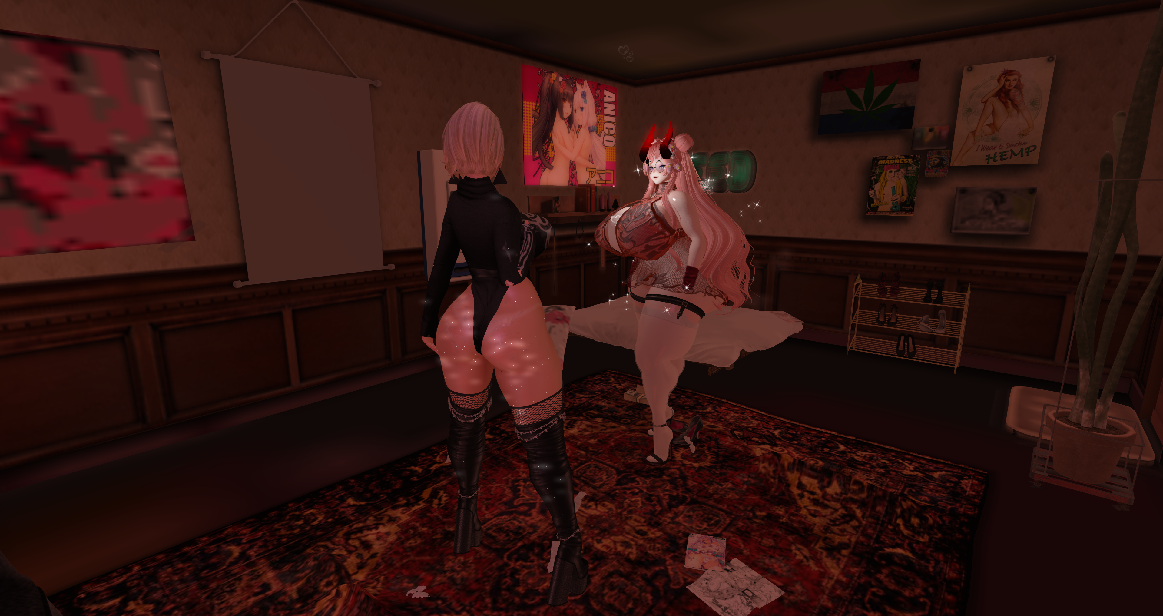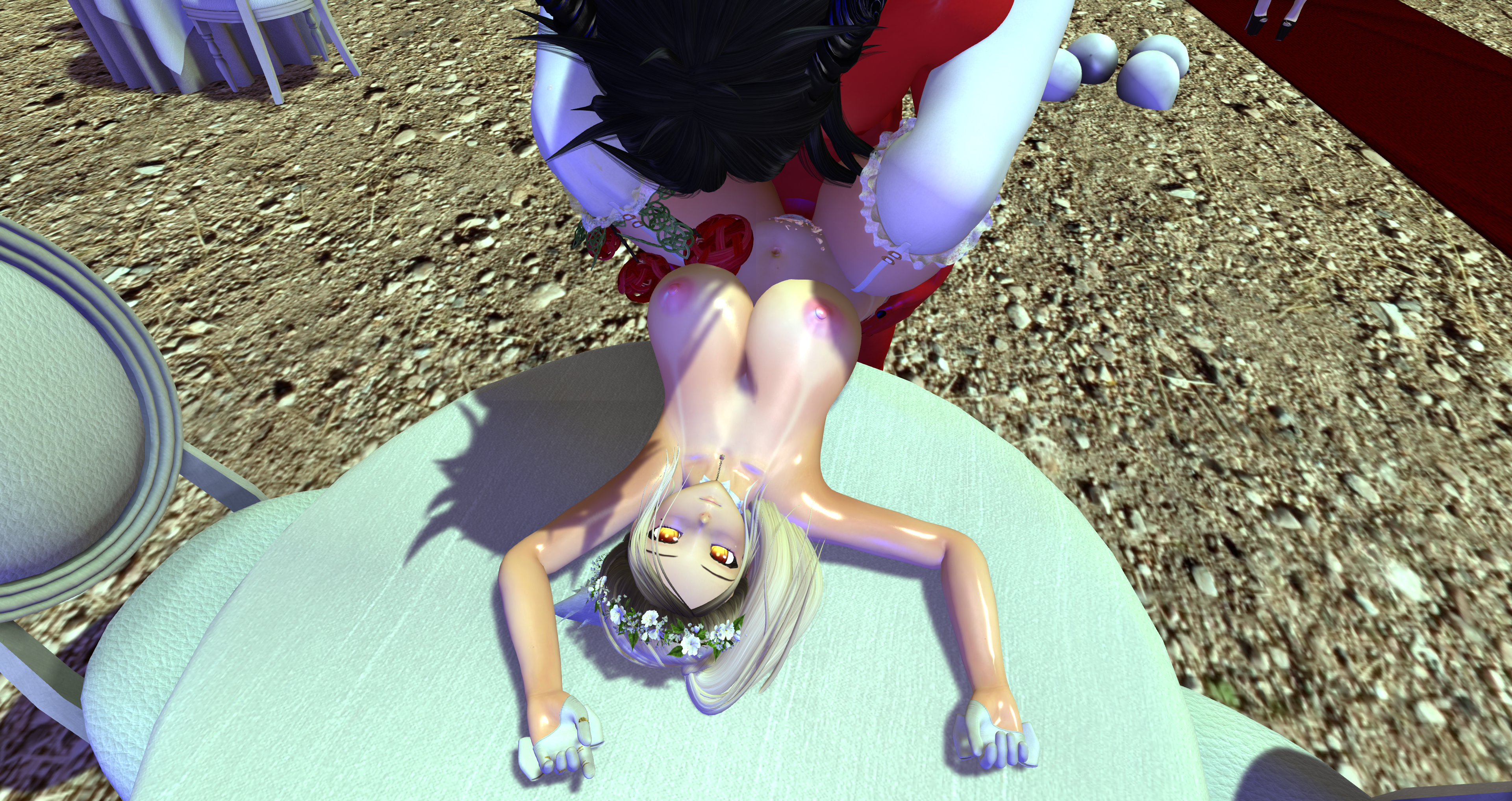 Second Life Hentai Slut surrounded by black cocks