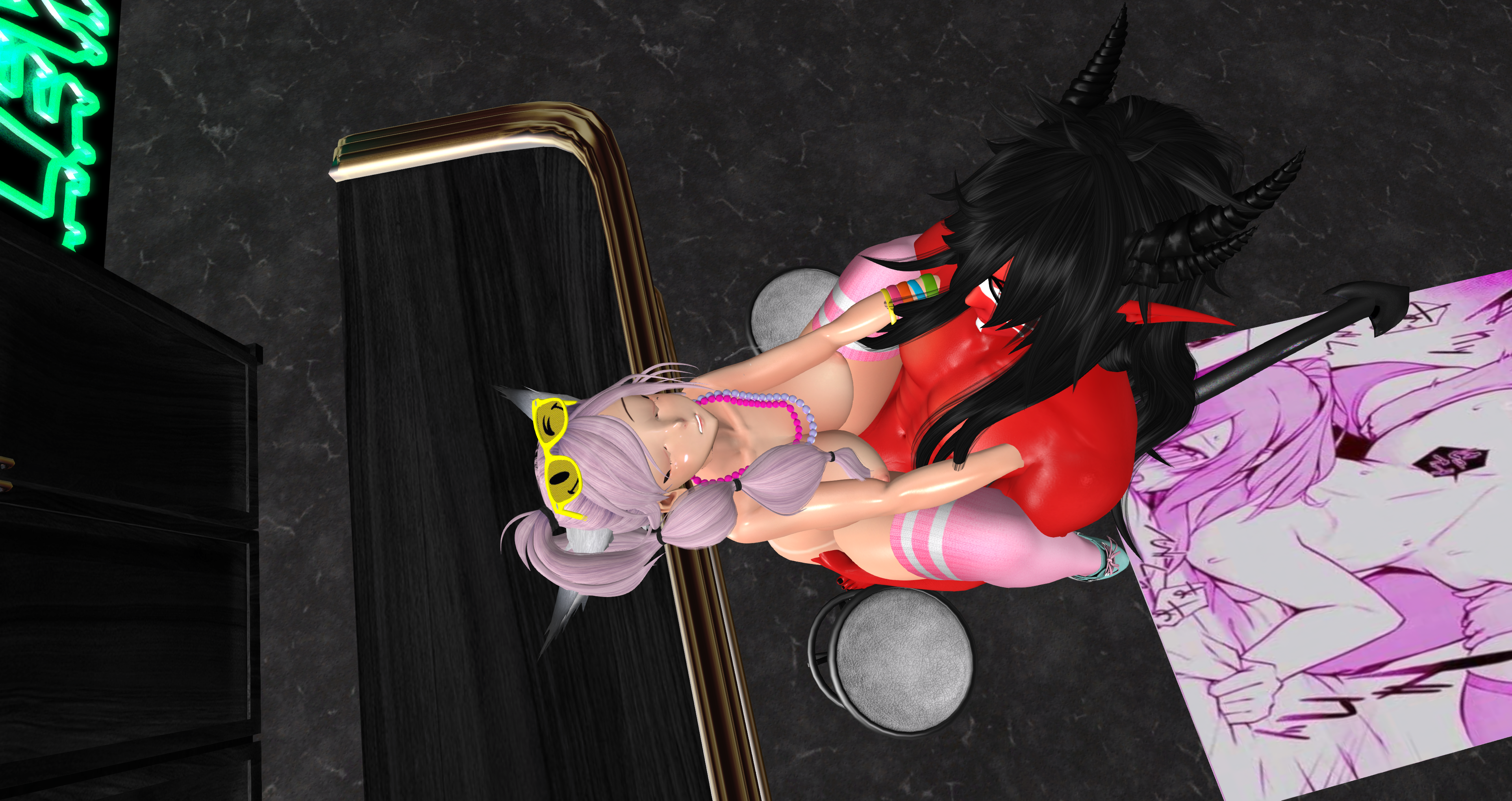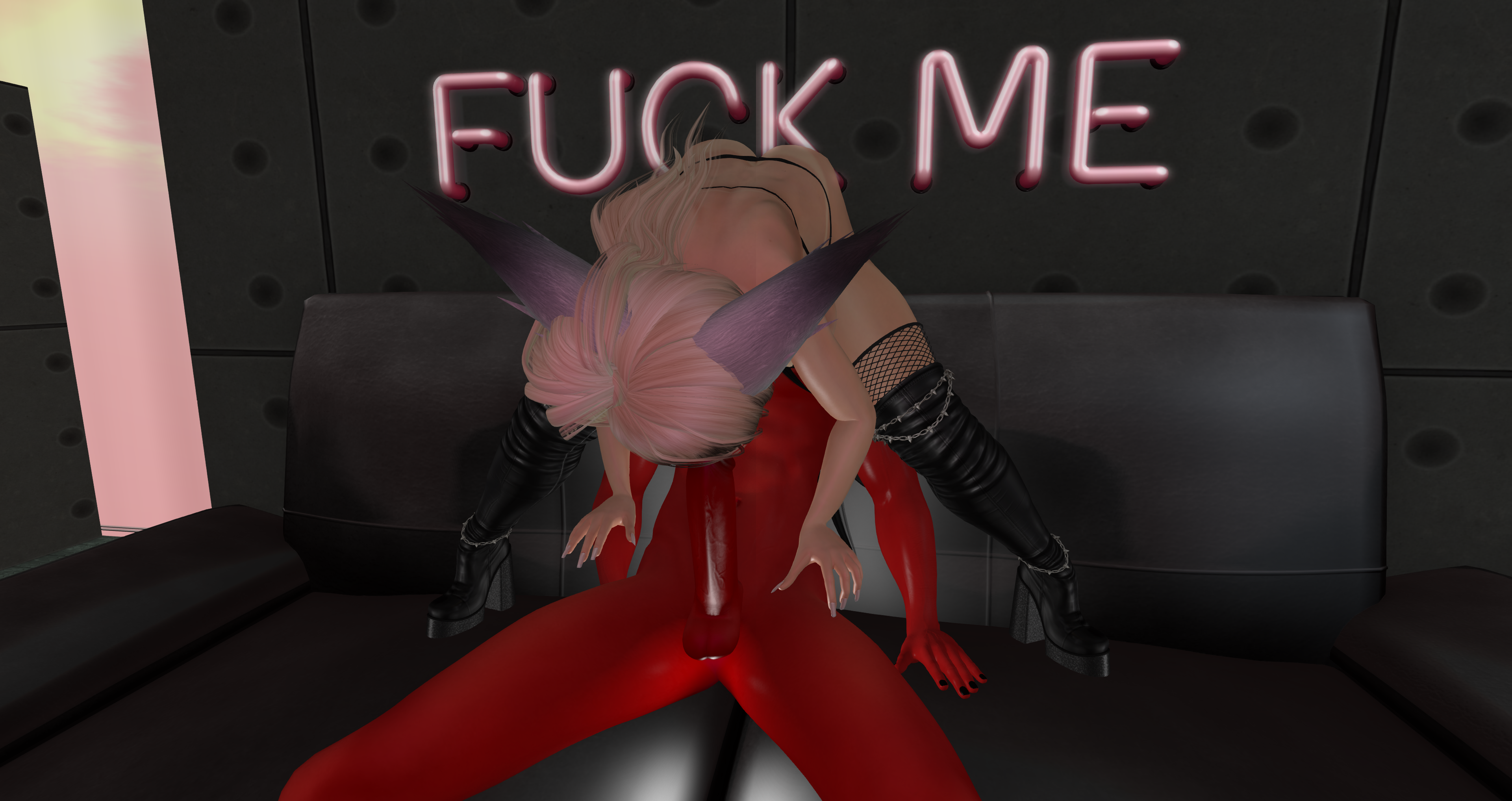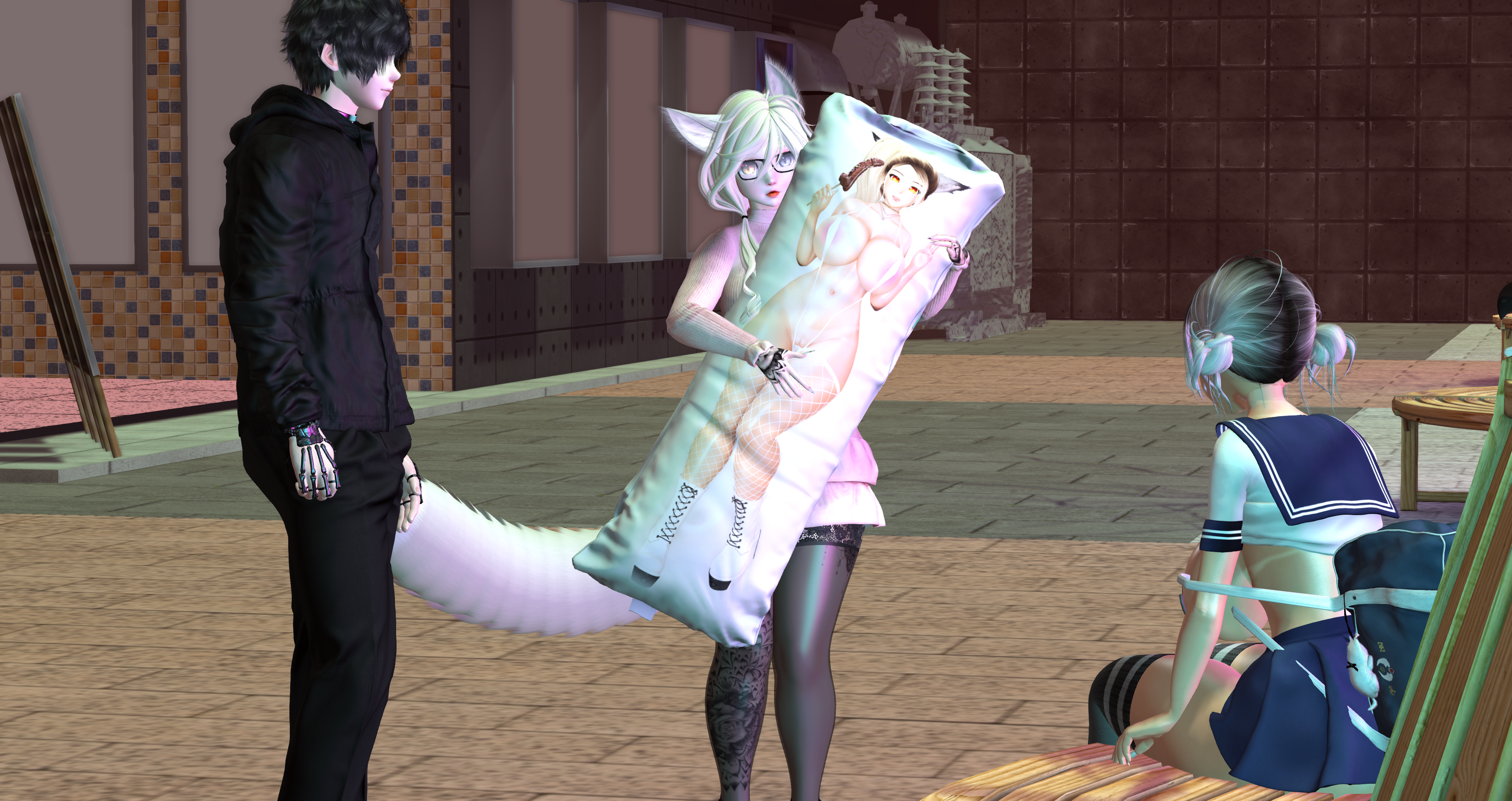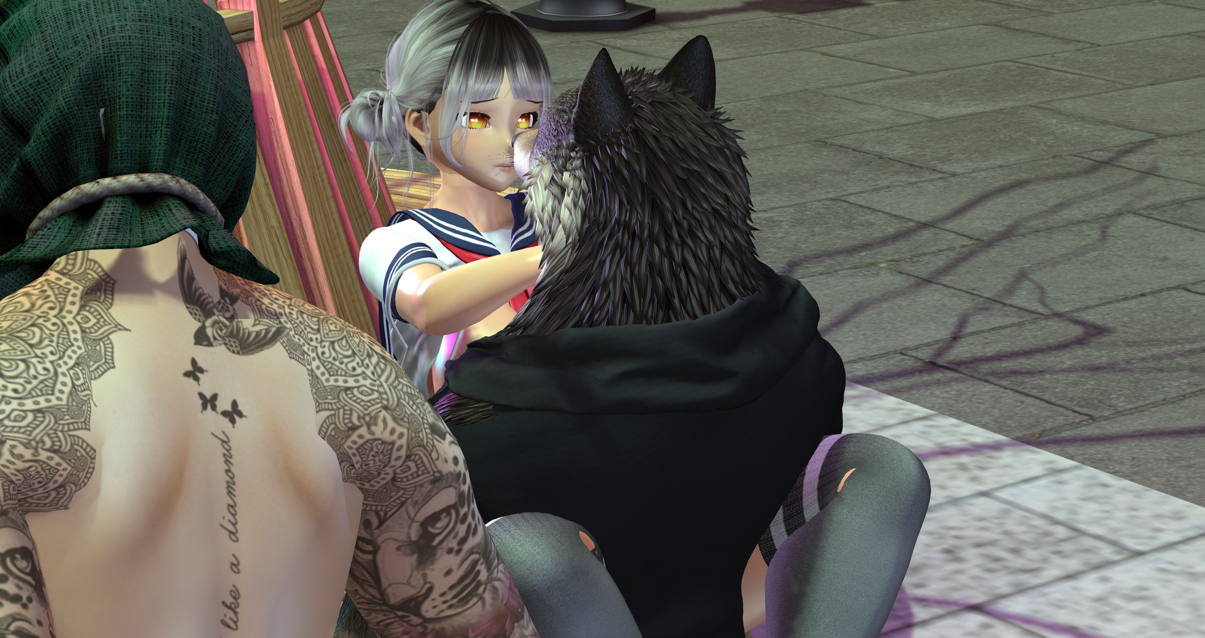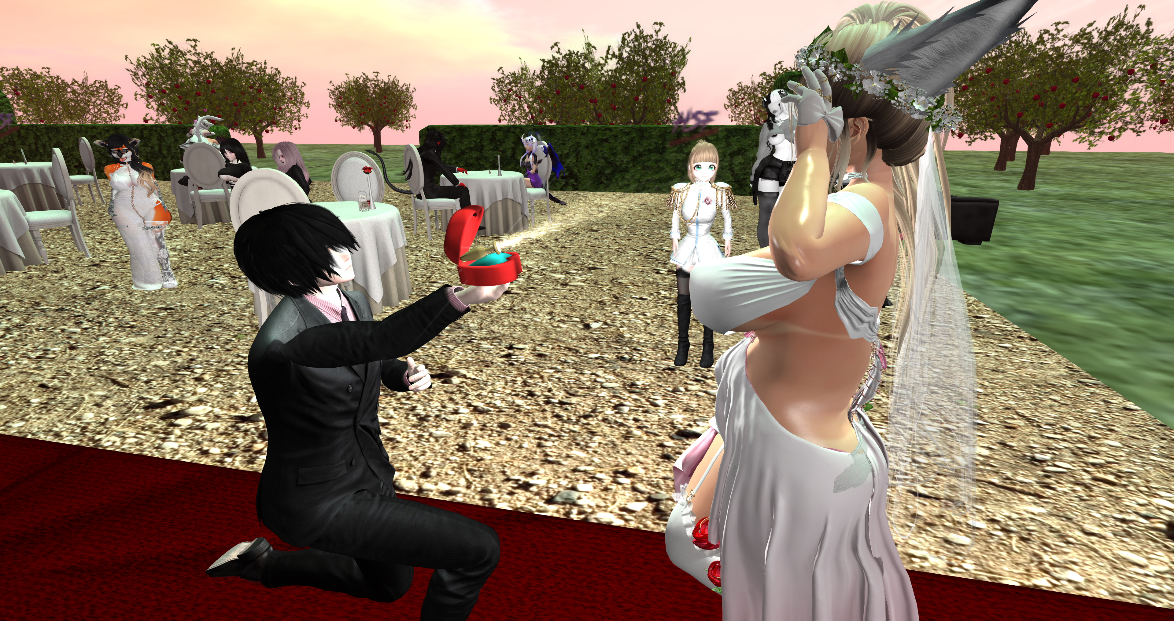 Second Life Hentai Slut surrounded by black cocks