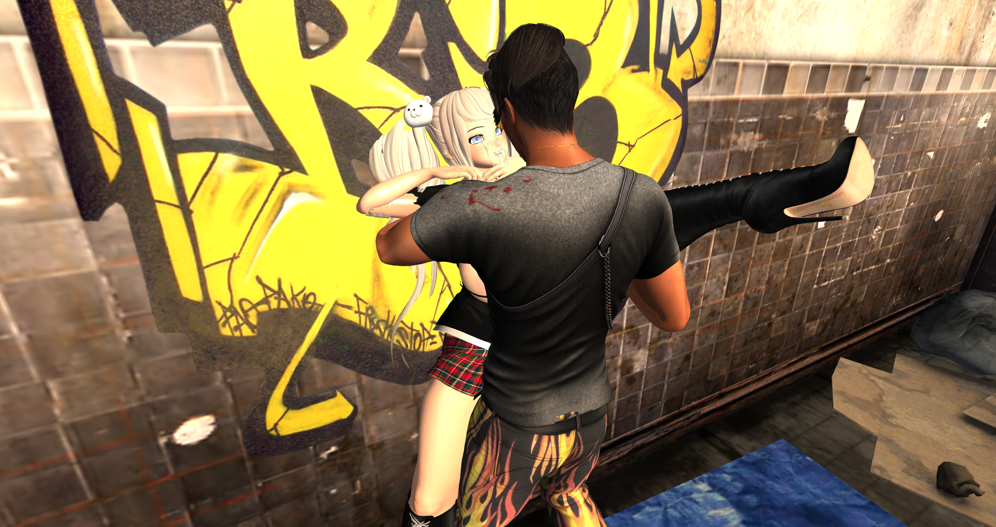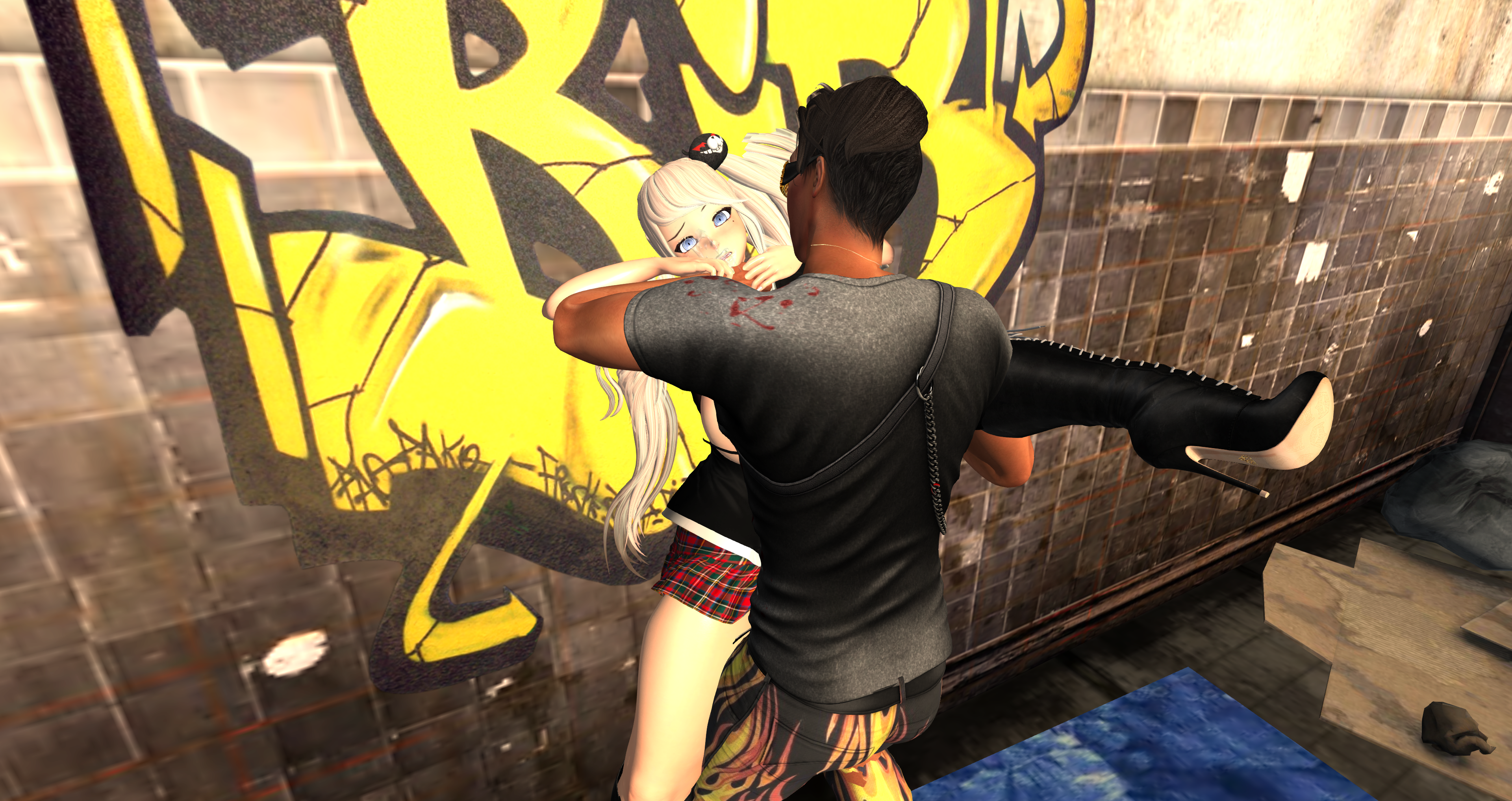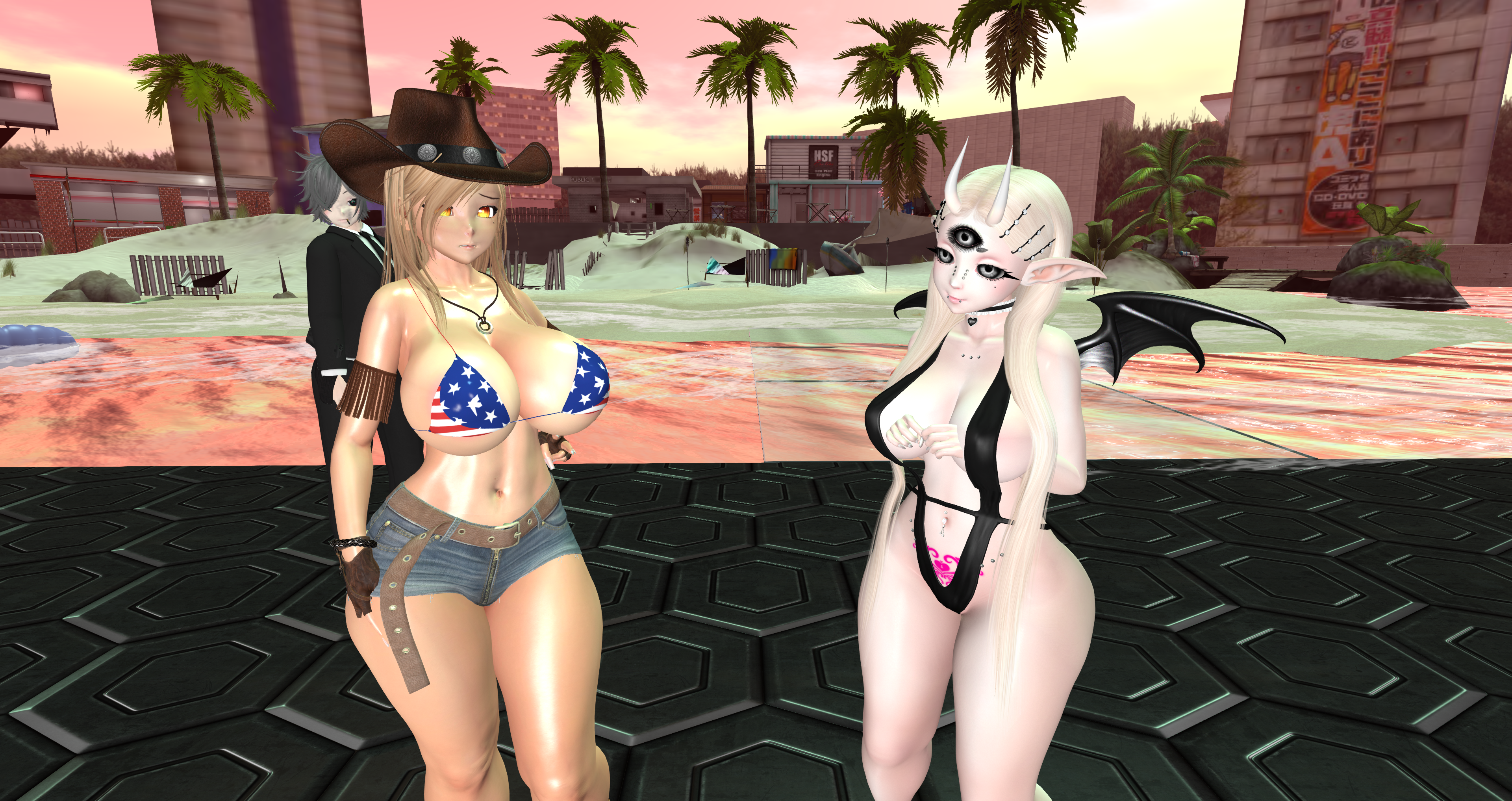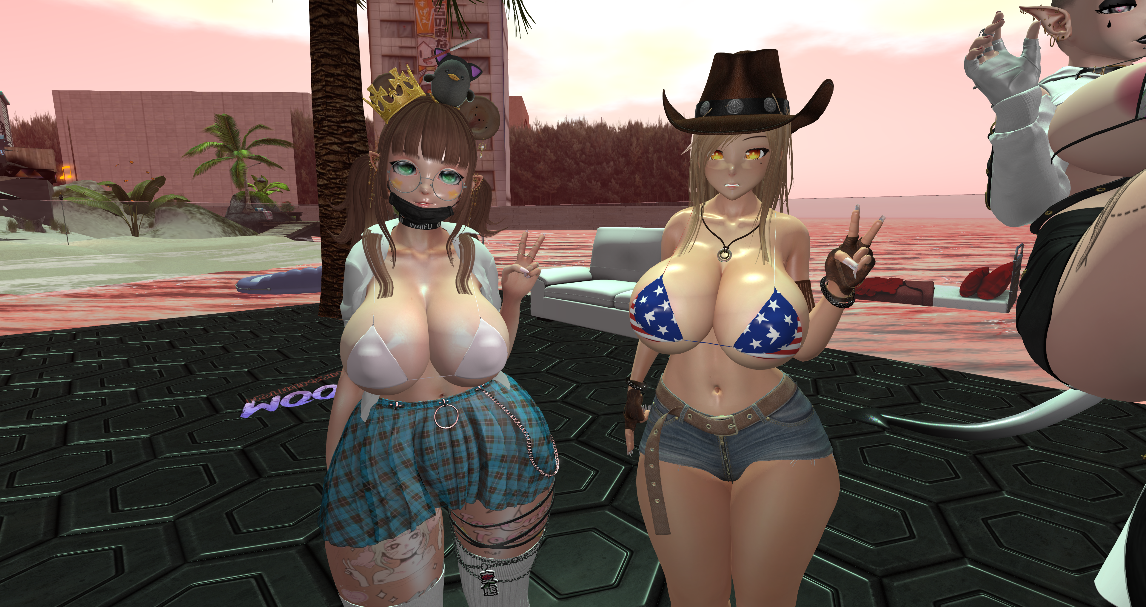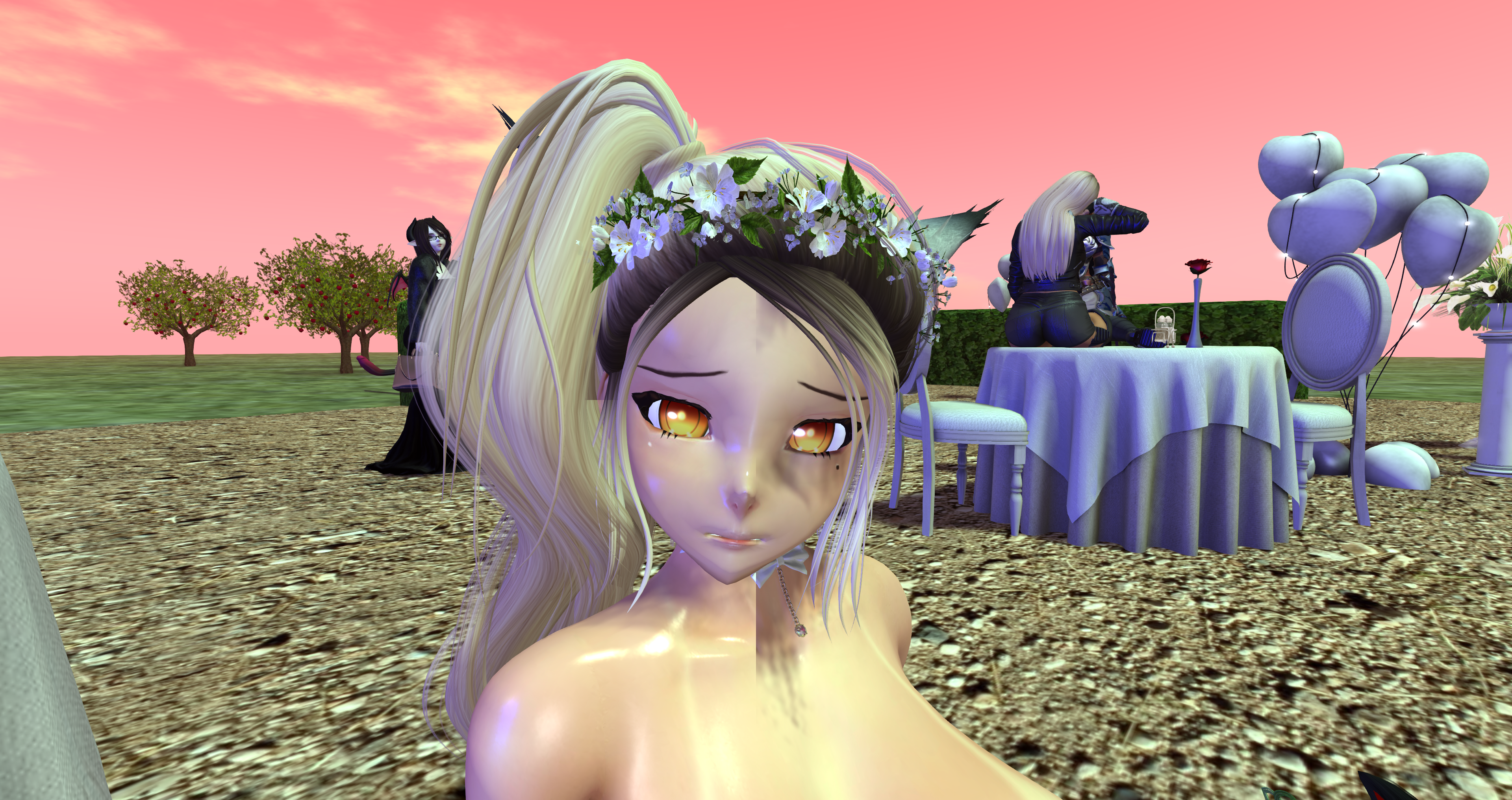 Second Life Hentai Slut surrounded by black cocks