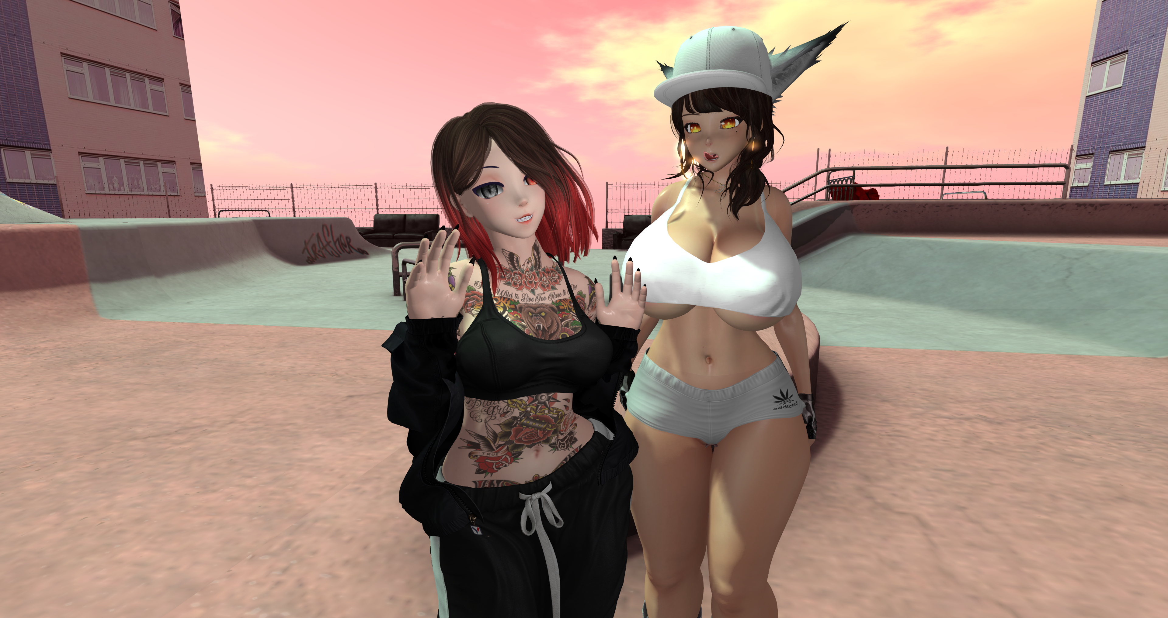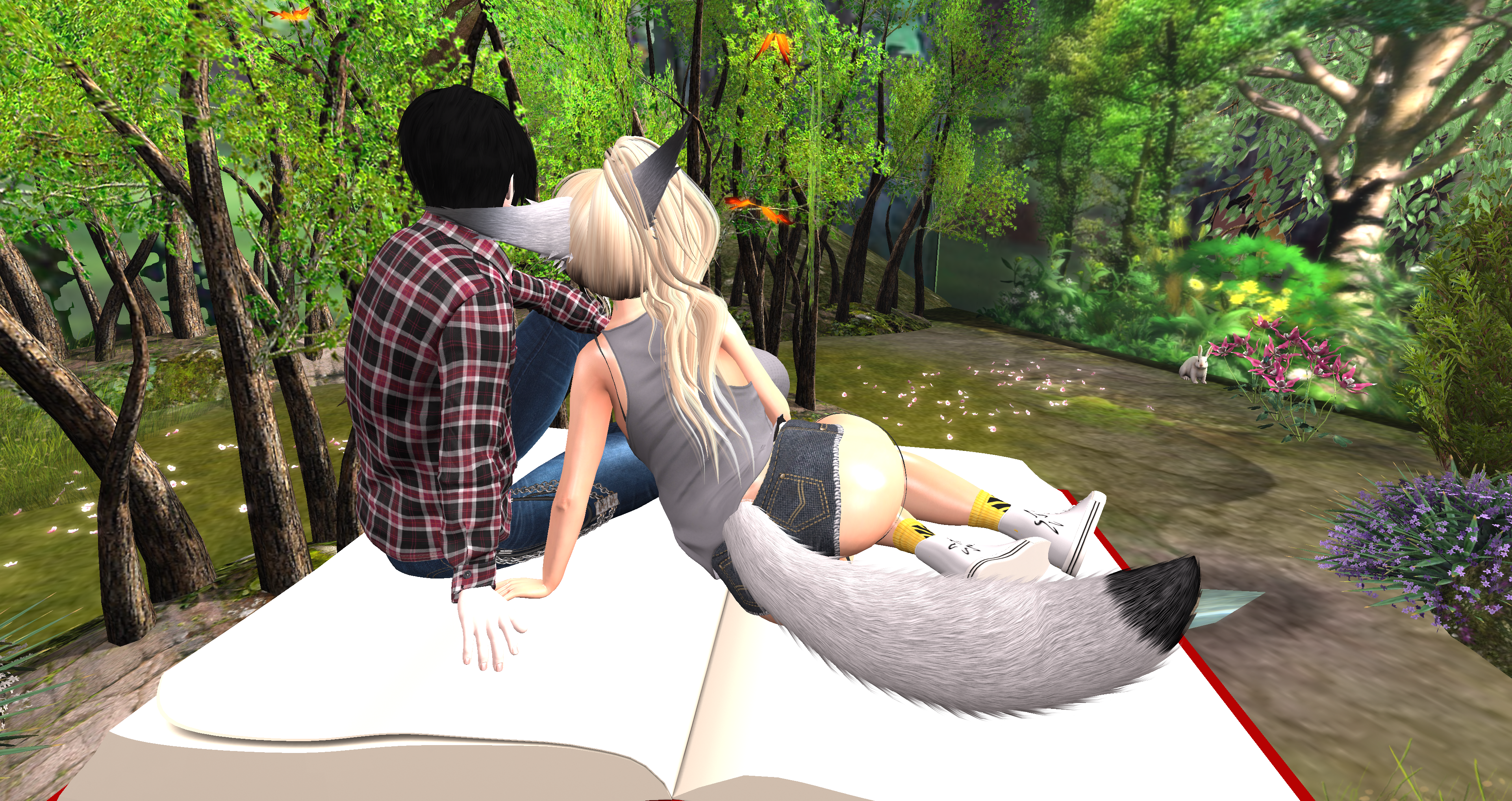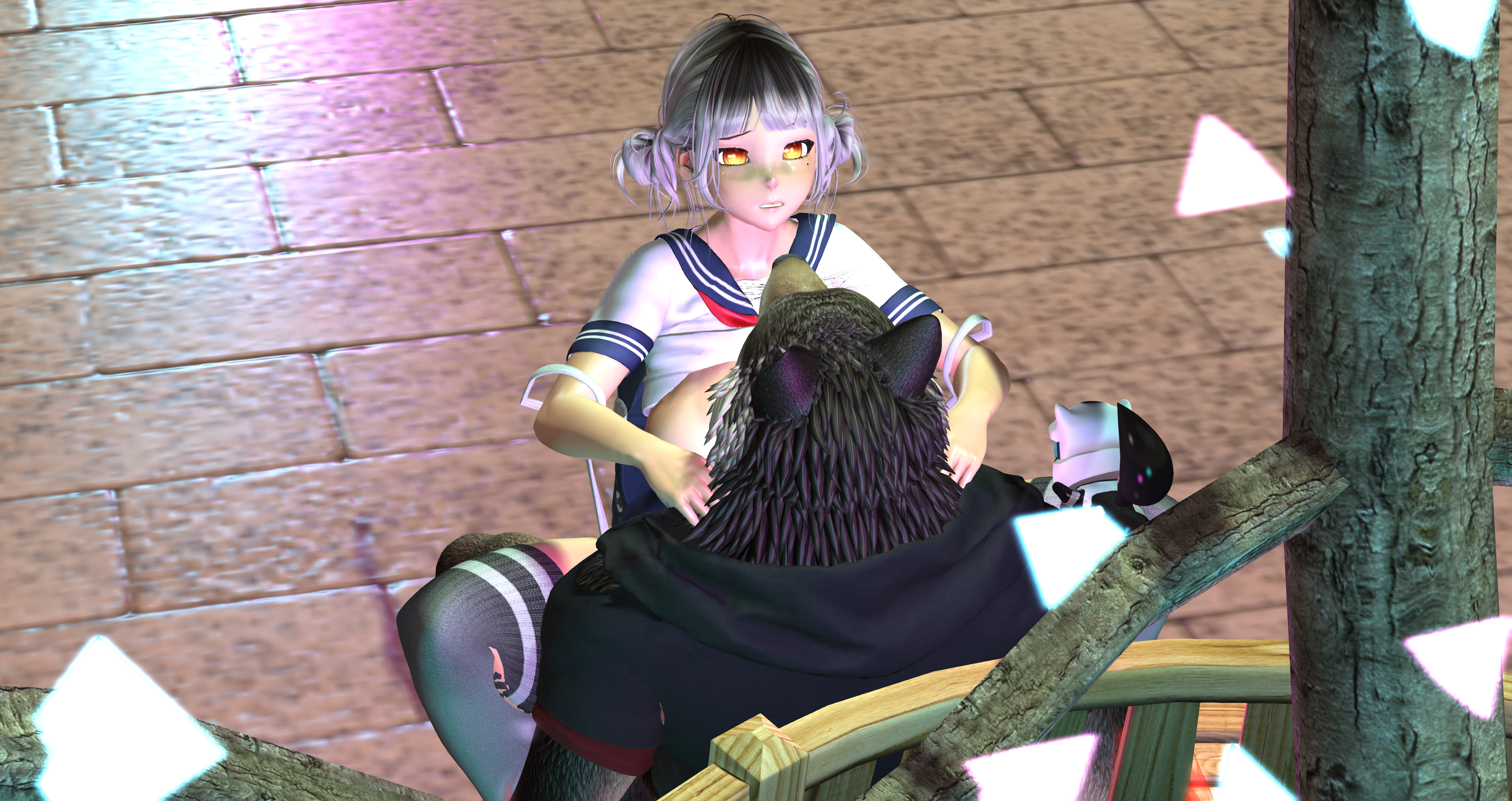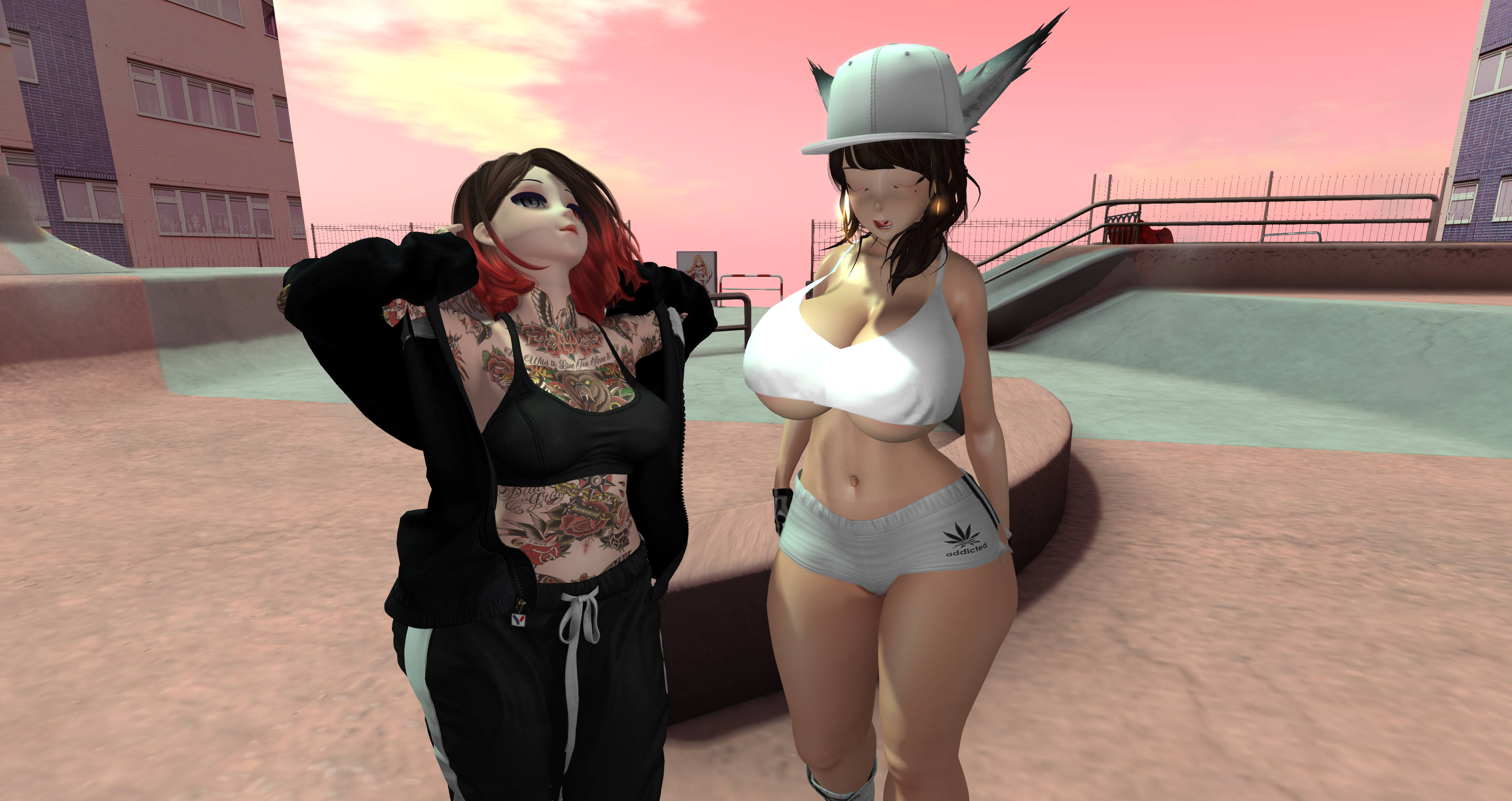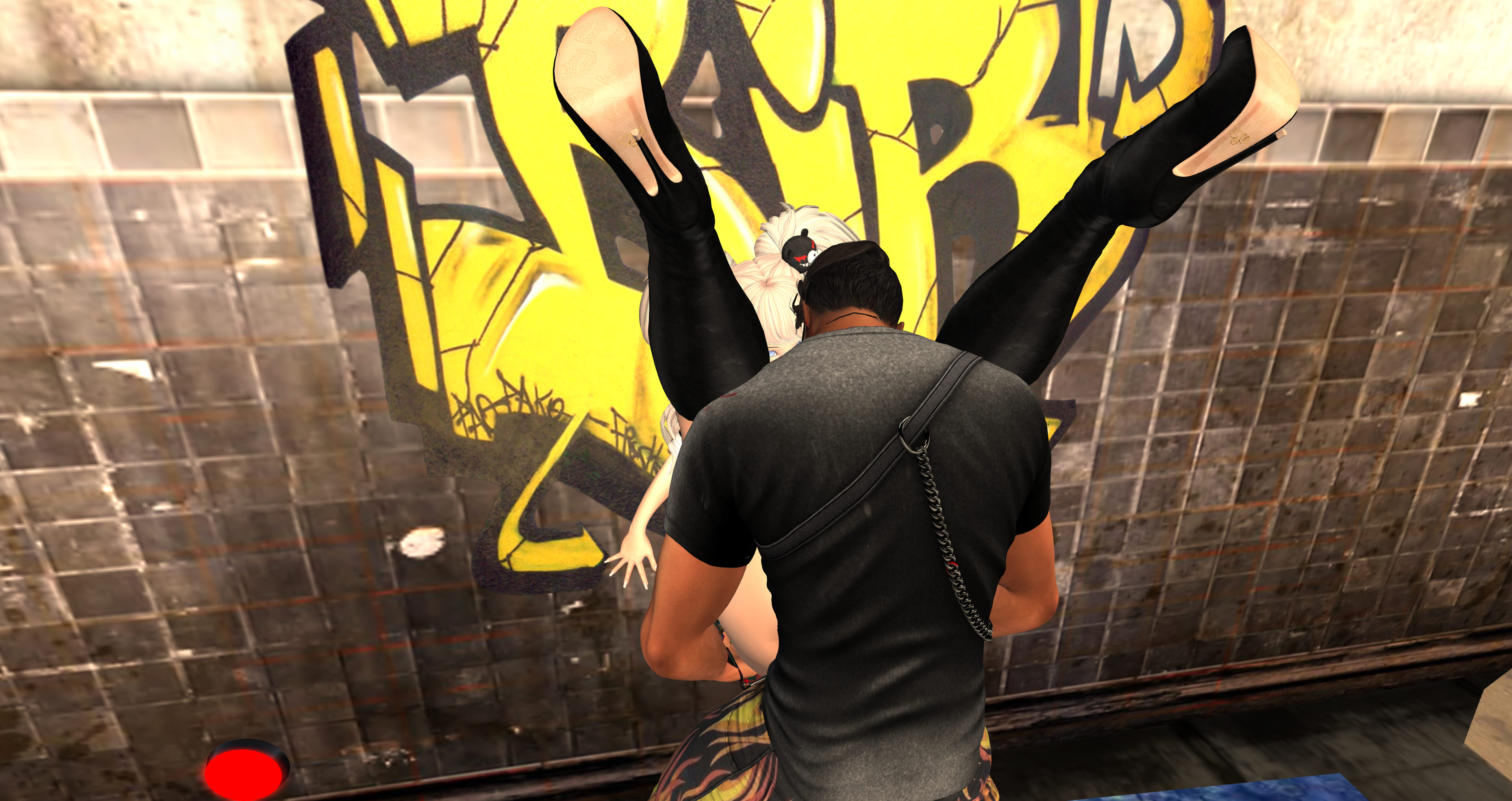 Second Life Hentai Slut surrounded by black cocks